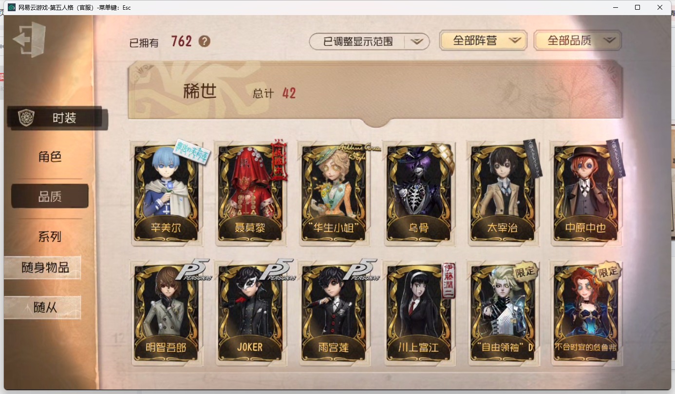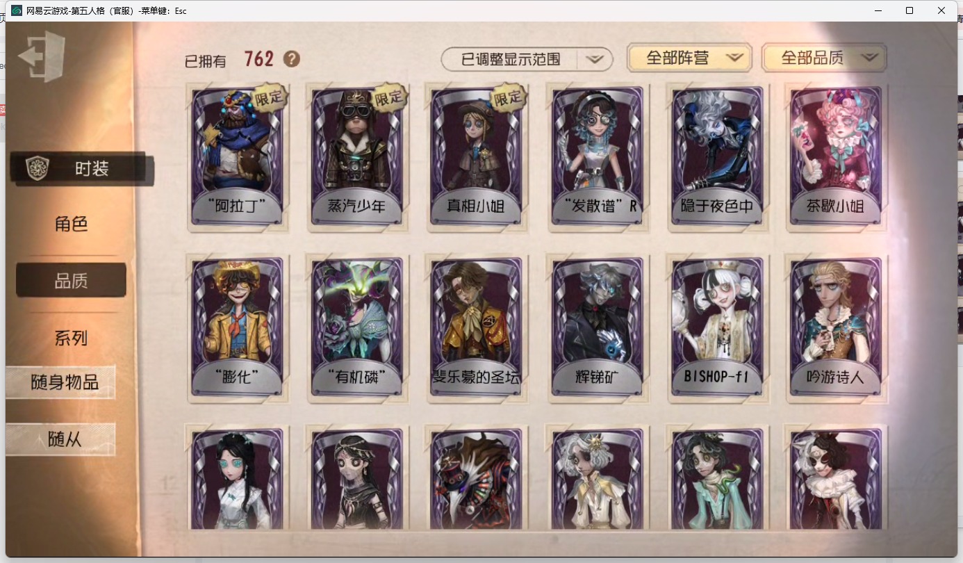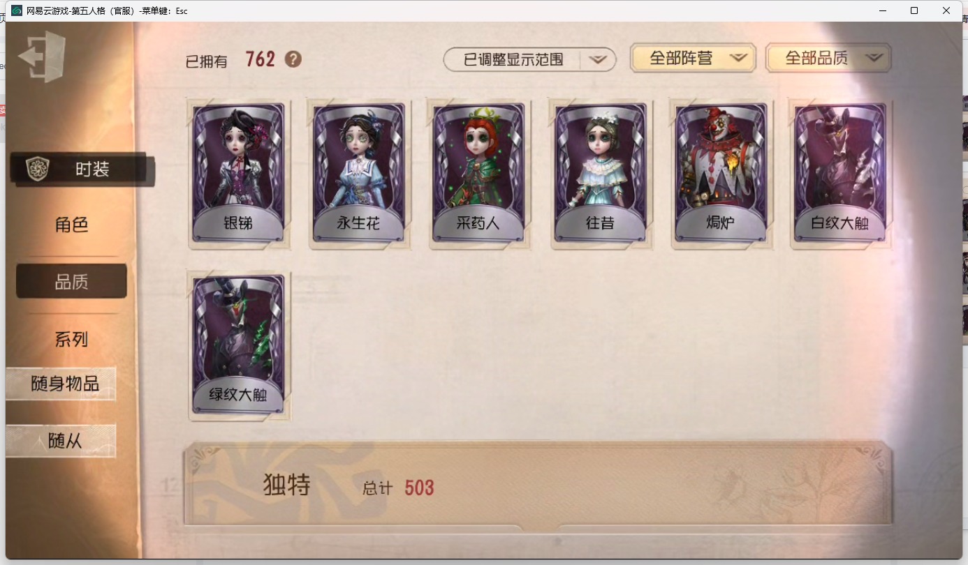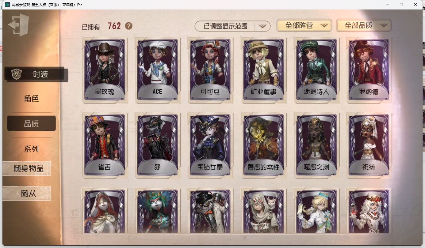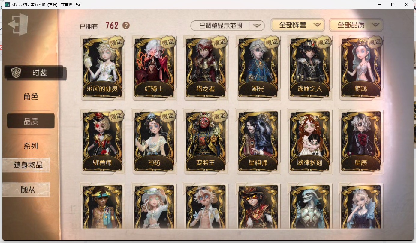 [16588179]安卓官服 邮箱账号 762时装 42金皮 217紫皮 28随从 265随身物品 【时装】:勘探员-盖提亚之遗园丁初晴“小女孩”-小六记者-小玉佣兵-柴郡猫园丁-怪鸟“小女孩”-欧律狄刻杂技演员-雨宫莲杂技演员-joker作曲家-猎龙者病患-溯光蜡像师-星相师“杰克”-加里小丑-oph.joker气象学家-采风的仙灵医生-司药牛仔-谪仙孽蜥-耶梦加得大副-雷斯垂德探长记者-华生小姐“囚徒”-oph.luca弓箭手-不合时宜的危鲁弗“杰克”-乌骨画家-掌中篆记红蝶-胧夜小说家-肖驰调香师-聂莫黎古董商-陶梦嫣台球手-自由领袖d入殓师-变彩病患-休塔尔克冒险家-赞因“骑士”-辛美尔勘探员-盛夏飞盘幸运儿-蛋小黄的好朋友佣兵-oph.naib佣兵-弦音畸变“骑士”-红骑士厂长-“非卖品”古董商-oph.qi拉拉队员-采集速巡木偶师-义体再构小说家-“伊始新篇”击球手-冠军舵手祭司-惊鸿空军-尼德霍格“杰克”-夜来香勘探员-中原中也机械师-小红帽大副-明智吾郎病患-逃罪之人病患-星辰红夫人-夜潮“杰克”-忘川渡人黄衣之主-死灵师调酒师-海盐特调舞女-驯兽师小丑-变脸王前锋-火车头梦之女巫-川上富江“囚徒”-太宰治
