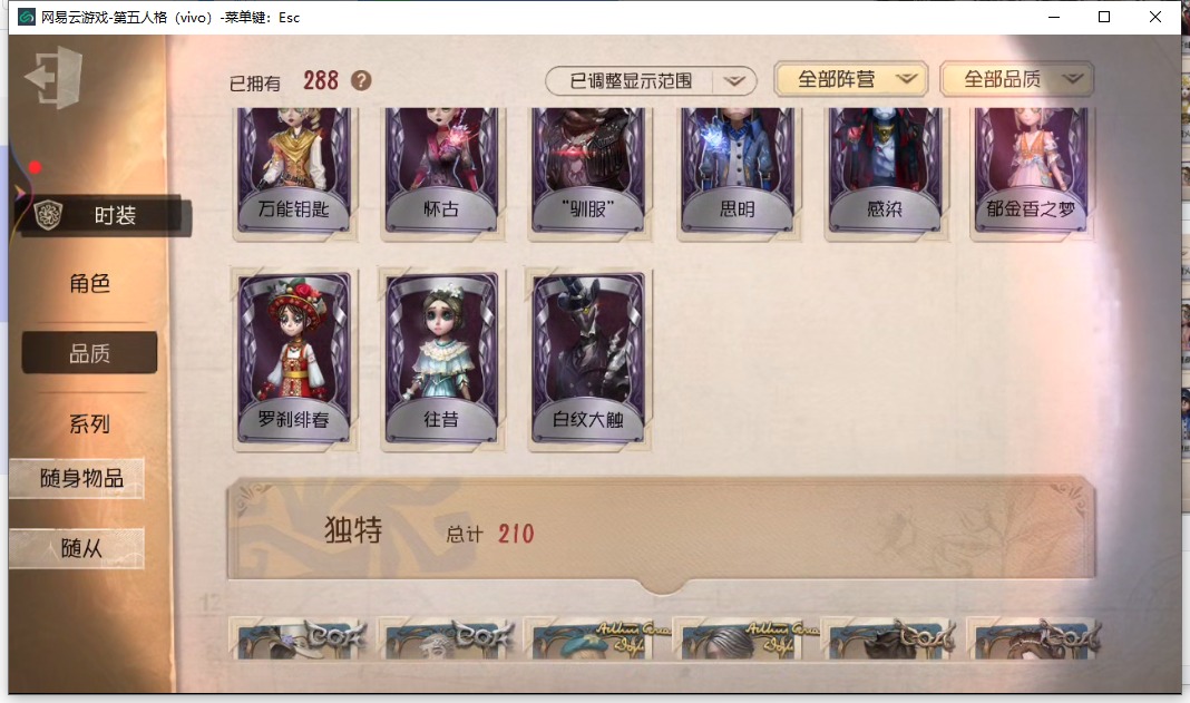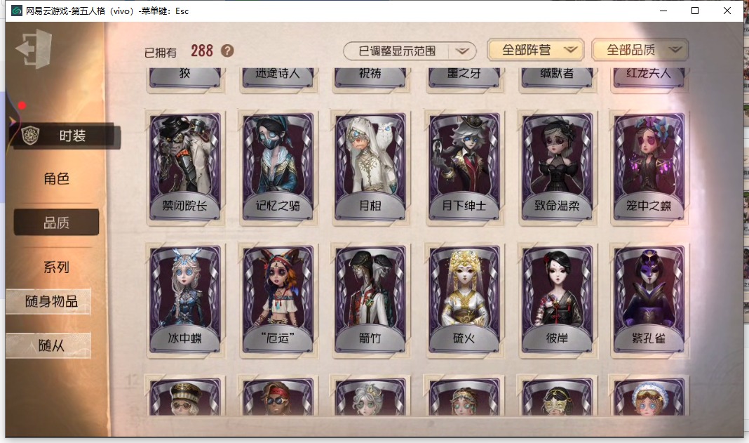[16616312]vivo 手机账号 288时装 10金皮 69紫皮 14随从 90随身物品 【时装】爱丽丝·德罗斯-片刻闲暇园丁初晴空军-天河拉拉队员-bishop-f1记者-小玉咒术师-噩之牙渔女-迷迭香红蝶-硫火心理学家-神圣阿斯莫小说家-肖驰火灾调查员-蛙里奥梦之女巫-裁缝夫人“愚人金”-辉锑矿空军-万能钥匙前锋-水球救生舞女-流离的月光园丁-郁金香之梦飞行家-警戒哨台调酒师-校对人小说家-“伊始新篇”空军-怀古空军-尼德霍格祭司-冰中蝶机械师-不会枯萎的花机械师-咫尺天涯祭司-“厄运”机械师-佐仓双叶冒险家-发明家勘探员-迷途诗人厂长-“驯服”“噩梦”-“渊”疯眼-禁闭院长病患-玛吉努画家-江户川乱步“杰克”-白纹大触红夫人-女大公红蝶-紫孔雀红蝶-彼岸舞女-香薰桑拿幸运儿-苗木诚调香师-红菱艳调酒师-女高音舞女-高卷杏先知-月相园丁-兰闺惊梦园丁-罗刹绯春园丁-幽灵公主园丁-怪鸟园丁-等风来佣兵-思明医生-往昔调香师-致命温柔破轮-三面神前锋-霓虹先锋梦之女巫-川上富江盲女-书记官梦之女巫-红龙夫人调香师-笼中之蝶守墓人-奶酪入殓师-诺曼 【随身物品】最后的故事稀世致命的邀请函稀世“全熟”奇珍漂浮奇珍扑克牌奇珍咖啡壶稀世加拉尔奇珍禁忌之匙奇珍剪骨钳奇珍玫瑰手杖蓝奇珍雷电生成器稀世猎人的箭囊稀世火焰精灵奇珍蝶醉奇珍梦魇结晶稀世心形泡泡圈奇珍“星辰”稀世鹰羽奇珍vote盒子奇珍誓言奇珍日与月奇珍