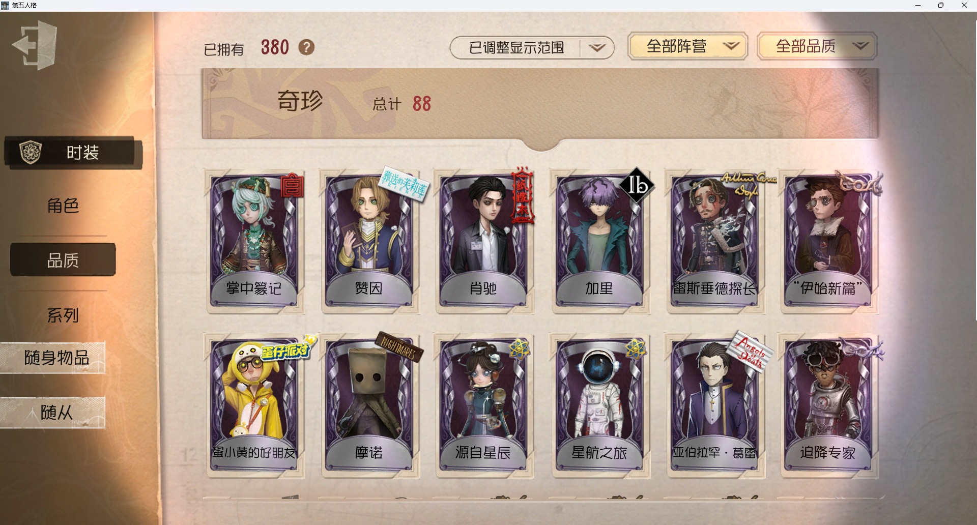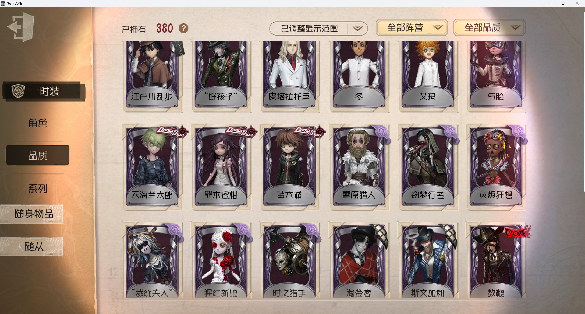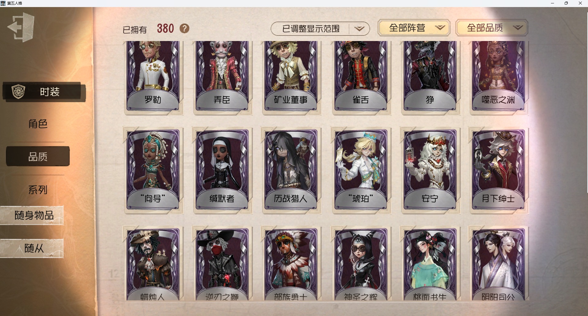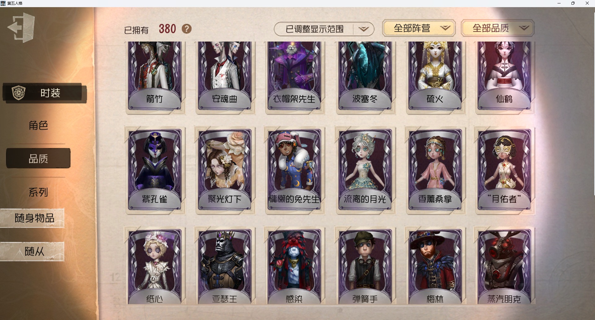 [16621464]安卓官服 手机账号 380时装 19金皮 88紫皮 18随从 182随身物品 【时装】:园丁-源自星辰勘探员-盖提亚之遗律师-亚伯拉罕·葛雷幸运儿-星航之旅咒术师-灰烬狂想爱哭鬼-摩诺医生-永生花“愚人金”-罪恶熔火野人-雪原猎人野人-弄臣园丁-艾玛佣兵-弹簧手佣兵-感染“杰克”-艾札克·佛斯特“囚徒”-天海兰太郎咒术师-缄默者咒术师-“向导”杂技演员-雨宫莲杂技演员-joker杂技演员-气胎摄影师-安宁隐士-游隼“杰克”-加里黄衣之主-衣帽架先生梦之女巫-裁缝夫人牛仔-谪仙大副-雷斯垂德探长咒术师-噬恶之渊“杰克”-乌骨画家-掌中篆记小说家-肖驰冒险家-赞因园丁-奥村春幸运儿-蛋小黄的好朋友时空之影-“有机磷”机械师-纸心红蝶-硫火宿伞之魂-桃面书生小说家-“伊始新篇”哭泣小丑-熄灭的太阳摄影师-“琥珀”“法罗女士”-芳泽霞蜘蛛-聚光灯下舞女-流离的月光园丁-noir击球手-迫降专家空军-新岛真空军-尼德霍格机械师-佐仓双叶祭司-神圣之辉“杰克”-夜来香鹿头-蒸汽朋克魔术师-梅林勘探员-雀舌勘探员-矿业董事大副-明智吾郎大副-罗勒“噩梦”-“渊”“噩梦”-随机数厂长-亚瑟王病患-星辰“杰克”-“好孩子"画家-江户川乱步“杰克”-绿纹大触“杰克”-白纹大触“杰克”-金纹大触“杰克”-盛宴伯爵“杰克”-忘川渡人红蝶-紫孔雀红蝶-仙鹤黄衣之主-波塞冬红夫人-赤宴舞女-高卷杏舞女-“月佑者”舞女-香薰桑拿小丑-异界行者医生-罪木蜜柑幸运儿-苗木诚幸运儿-拉塔托斯克先知-历战猎人牛仔-部族勇士孽蜥-窃梦行者前锋-慵懒的兔先生前锋-坂本龙司摄影师-月下绅士宿伞之魂-箭竹宿伞之魂-寒霜宿伞之魂-阴阳司公摄影师-皮塔拉托里宿伞之魂-安魂曲宿伞之魂-十字路口的美少年入殓师-喜多川祐介入殓师-fox 【随身物品】:“全熟”奇珍海之低语(奇珍)拒刃匕首(奇珍)愤怒河豚(奇珍)微缩星球(奇珍)致命的邀请函稀世蒸汽炉奇珍炸药桶奇珍子夜来使奇珍针线包奇珍幽灵娃娃奇珍余兴奇珍漂浮奇珍回旋镖奇珍聚集哨笛奇珍跃升的强音稀世记忆囚笼奇珍