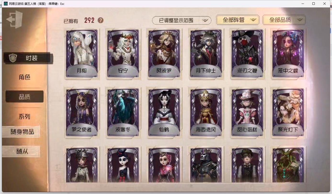 [16623175]安卓官服 邮箱账号 292时装 14金皮 67紫皮 18随从 103随身物品 【时装】:心理学家-神圣阿斯莫心理学家-长夜幸运儿-星航之旅野人-弄臣佣兵-蒸汽少年蜘蛛-花祭“记录员”-执政官“小女孩”-欧律狄刻咒术师-噩之牙杂技演员-ace摄影师-安宁“杰克”-加里佣兵-弦音畸变火灾调查员-“膨化”渔女-破魔之刃野人-青须的公爵哭泣小丑-熄灭的太阳“法罗女士”-芳泽霞蜘蛛-聚光灯下祭司-梦之使者魔术师-光学镜面哭泣小丑-烟花盖伊机械师-小红帽疯眼-炎火之怒26号守卫-蛋壳先生爱哭鬼-伊万病患-星辰画家-逃亡者画家-江户川乱步红夫人-伊莎贝拉“杰克”-邪眼寄主红蝶-仙鹤红夫人-最后一舞黄衣之主-波塞冬园丁-真相小姐舞女-恶之花舞女-驯兽师舞女-梵音之舞舞女-高卷杏玩具商-浴石商人调香师-时之砂守墓人-壁画修复员调香师-笼中之蝶小说家-大师牌园丁-兰闺惊梦“小女孩”-年岁先知-月相先知-夜行枭先知-不屈的信仰小提琴家-衔尾蛇守墓人-列车长梦之女巫-红龙夫人盲女-甜心蛋糕盲女-音波盲女-吉尔达摄影师-月下绅士摄影师-亚兹拉尔摄影师-阿波罗宿伞之魂-东风遥“囚徒”-太宰治“囚徒”-雷入殓师-哈姆雷特入殓师-诺曼