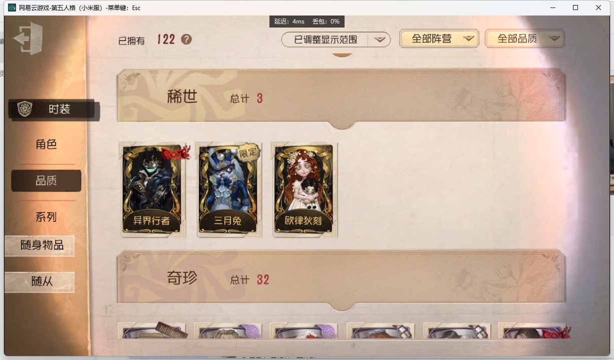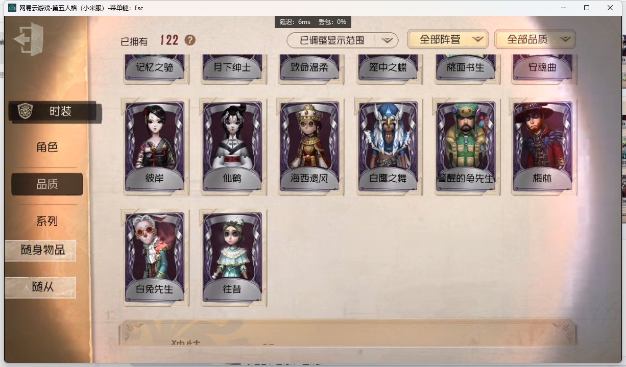 [17005711]小米-非账号转移 手机账号 122时装 3金皮 32紫皮 12随从 39随身物品 【时装】:26号守卫-三月兔爱哭鬼-摩诺野人-雪原猎人佣兵-白鹰之舞佣兵-蒸汽少年“记录员”-执政官“小女孩”-欧律狄刻时空之影-“有机磷”入殓师-记忆之骑宿伞之魂-桃面书生哭泣小丑-熄灭的太阳“法罗女士”-芳泽霞空军-新岛真机械师-佐仓双叶魔术师-梅林律师-白兔先生勘探员-矿业董事厂长-“阿拉丁”红蝶-仙鹤红蝶-彼岸调香师-笼中之蝶调香师-致命温柔调香师-猩红新娘小丑-异界行者“小女孩”-桃乐丝医生-往昔“小女孩”-年岁冒险家-警醒的龟先生盲女-海西遗风摄影师-月下绅士宿伞之魂-残花泪宿伞之魂-安魂曲入殓师-喜多川祐介入殓师-fox入殓师-嬉命人 【随身物品】:案件模拟(奇珍)欢呼(奇珍)剪骨钳奇珍见证稀世白羽奇珍蝶影奇珍厌离稀世协律奇珍尼古拉斯的遗嘱奇珍誓言奇珍