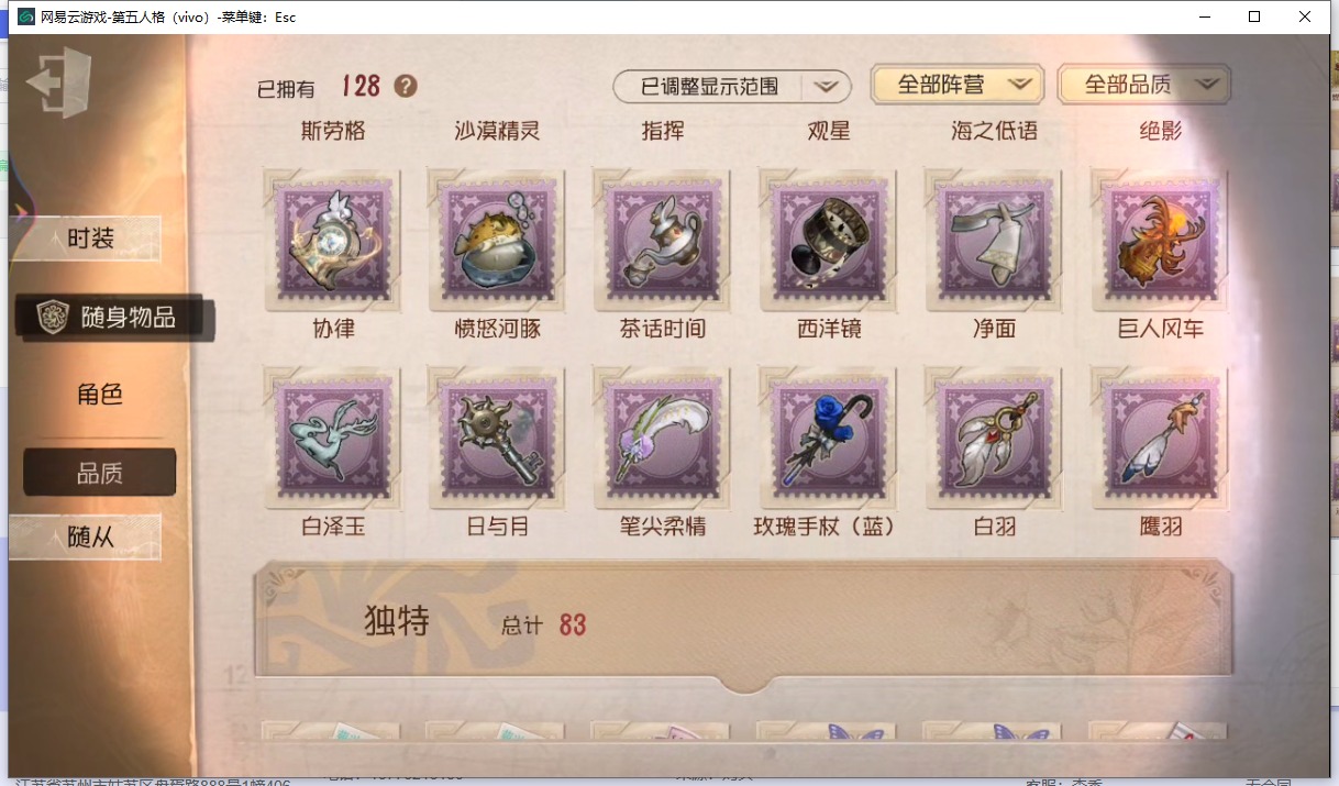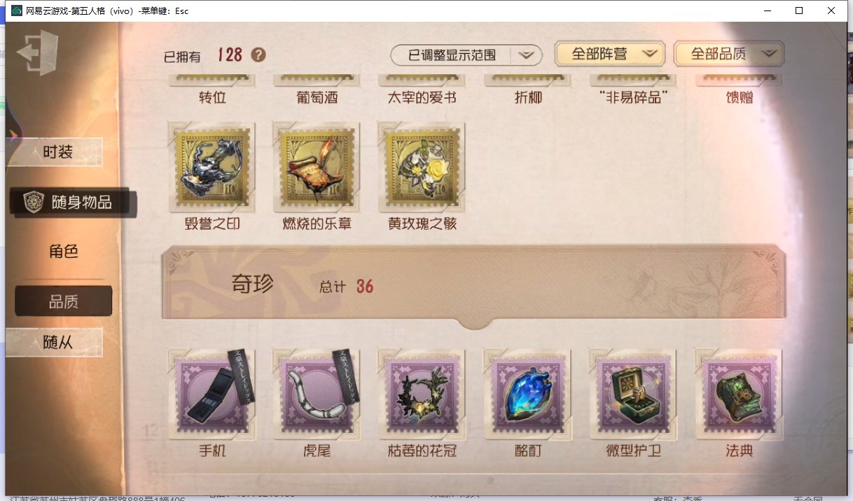 [17238692]vivo 手机账号 293时装 12金皮 80紫皮 16随从 128随身物品 【时装】入殓师-“加特”爱丽丝·德罗斯-片刻闲暇古董商-招风旗守夜人-knight-c3勘探员-盖提亚之遗作曲家-幽灵帆调酒师-逐浪的玫瑰勘探员-盛夏飞盘舞女-诡焰隐士-游隼病患-稀缺病案教授-紧急运输机械师-纸心牛仔-船影画家-温暖的平安夜幸运儿-蛋小黄的好朋友破轮-胡桃夹子律师-亚伯拉罕·葛雷鹿头-镏金铜鹿“记录员”-执政官病患-天使向导木偶师-行于界限间入殓师-变彩舞女-流离的月光画家-多色印刷前锋-水球救生拉拉队员-采集速巡飞行家-警戒哨台小说家-“伊始新篇”邮差-潘塔龙佣兵-弦音畸变宿伞之魂-桃面书生“心理学家”-银骑士摄影师-“琥珀”蜘蛛-聚光灯下病患-溯光“杰克”-加里骑士-艺术品商人记者-梦境中的爱丽丝26号守卫-蓝釉先生医生-司药邮差-华生医生击球手-迫降专家勘探员-中原中也哭泣小丑-炮弹飞船哭泣小丑-蚕食者盲女-海西遗风病患-星辰画家-江户川乱步红蝶-彼岸佣兵-中岛敦玩具商-线控信号先知-历战猎人先知-观测者先知-独行者“小女孩”-桃乐丝前锋-坂本龙司“囚徒”-太宰治梦之女巫-红龙夫人盲女-海女巫牛仔-逆刃之鞭“使徒”-荒野女巫宿伞之魂-残花泪摄影师-月下绅士 【随身物品】海之低语(奇珍)晴天娃娃(奇珍)燃烧的乐章(稀世)绝影(奇珍)斯劳格(奇珍)未奏的乐章(奇珍)沙漠精灵(奇珍)观星(奇珍)深海祝祷奇珍毁誉之印稀世“非易碎品”(稀世)太宰的爱书(稀世)转位稀世法典(奇珍)笔墨藏锋(奇珍)旧日征帆(奇珍)折柳稀世枯萎的花冠奇珍微型护卫奇珍馈赠稀世虎尾奇珍玫瑰手杖蓝奇珍净面奇珍黄玫瑰之骸稀世茶话时间奇珍白泽玉奇珍笔尖柔情奇珍鹰羽奇珍协律奇珍葡萄酒稀世