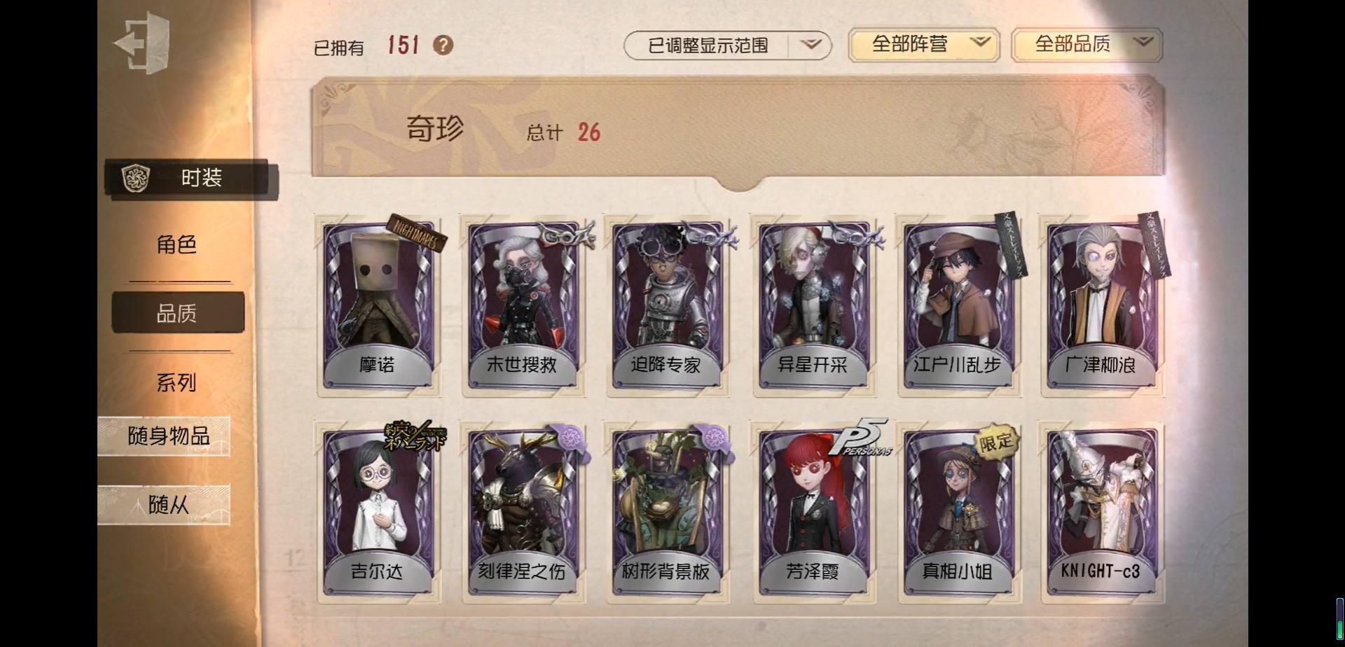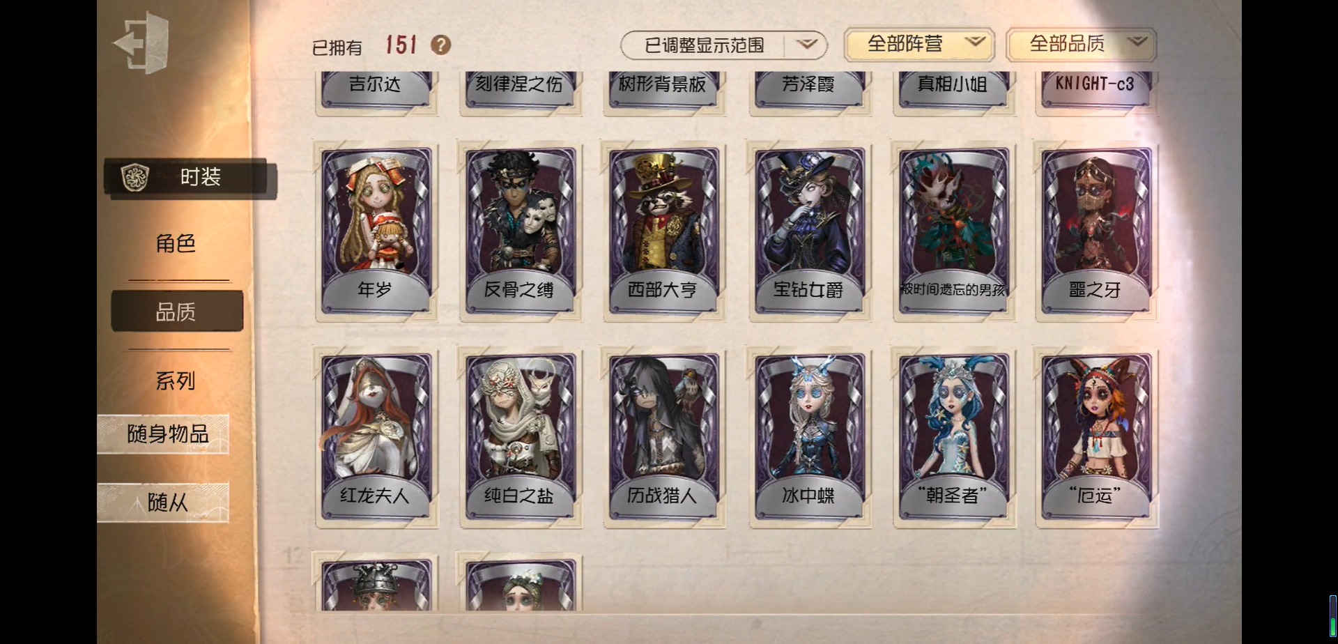 [17238697]华为 手机账号 151时装 4金皮 26紫皮 6随从 50随身物品 【时装】守夜人-knight-c3先知-纯白之盐爱哭鬼-摩诺“心理学家”-末世搜救咒术师-噩之牙“法罗女士”-芳泽霞26号守卫-西部大亨击球手-反骨之缚击球手-迫降专家祭司-“厄运”祭司-“朝圣者”祭司-惊鸿祭司-冰中蝶魔术师-广津柳浪鹿头-刻律涅之伤大副-铁钩船长大副-明智吾郎爱哭鬼-被时间遗忘的男孩画家-江户川乱步机械师-诡笑症红夫人-宝钻女爵小丑-变脸王先知-历战猎人园丁-真相小姐“小女孩”-年岁医生-往昔梦之女巫-红龙夫人盲女-吉尔达守墓人-异星开采 【随身物品】深海祝祷奇珍对决(稀世)绝境航船(稀世)剪骨钳奇珍梦魇结晶稀世玫瑰手杖蓝奇珍迷你锤奇珍玫瑰手杖奇珍毒液笔奇珍许愿瓶奇珍幽灵提灯奇珍西洋镜奇珍乾坤袋奇珍