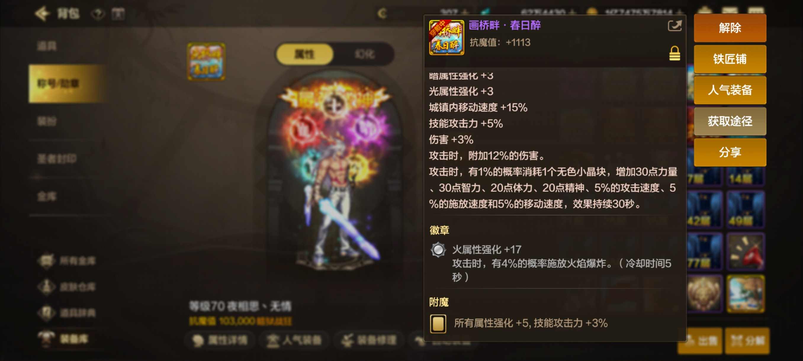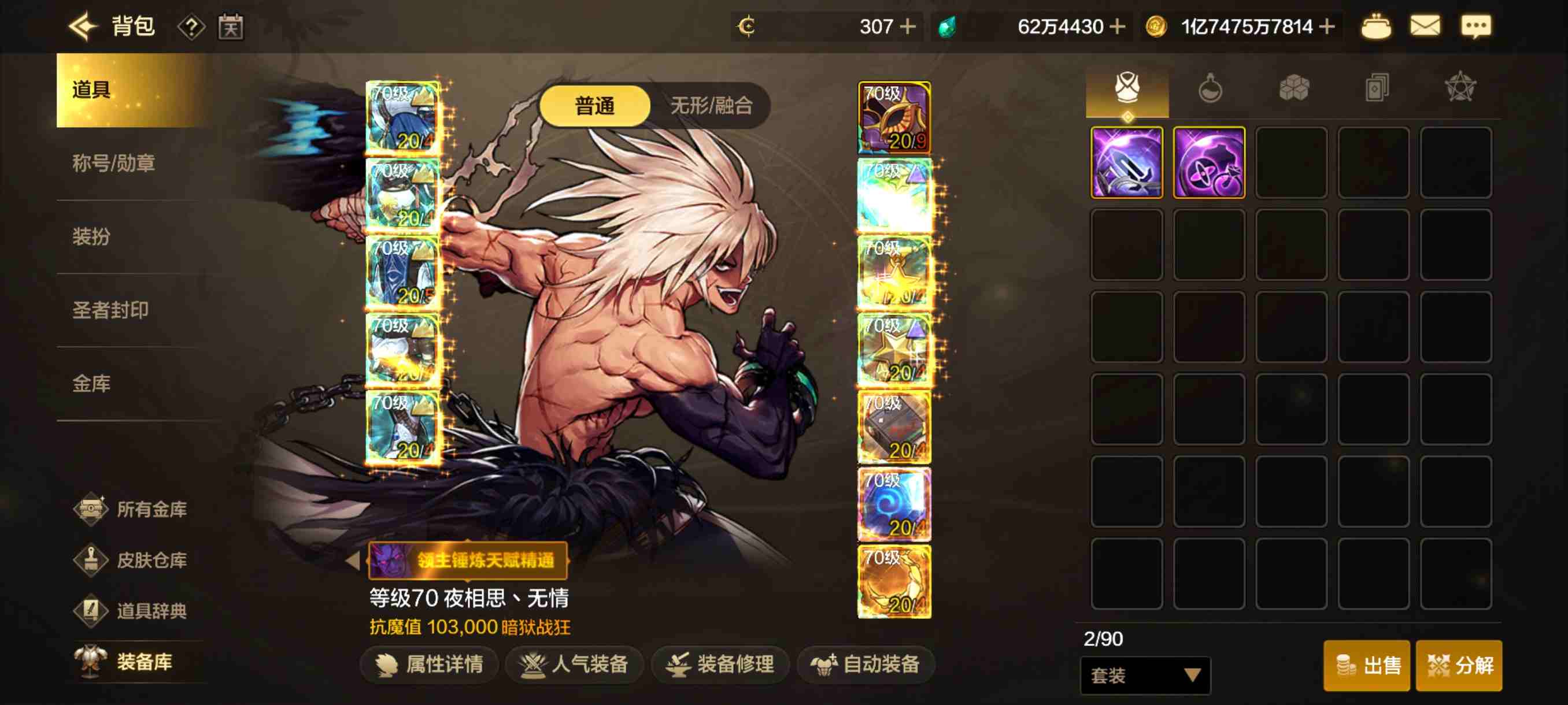 DNFM527号诚心出10.3红眼狗子6至尊道具,全身20。武器增幅9。全身4/5。泰拉70万。拍卖行20万泰拉。银色徽章全10。属强7➕6➕5➕5。详细情况看图。