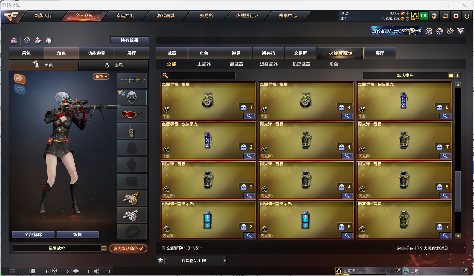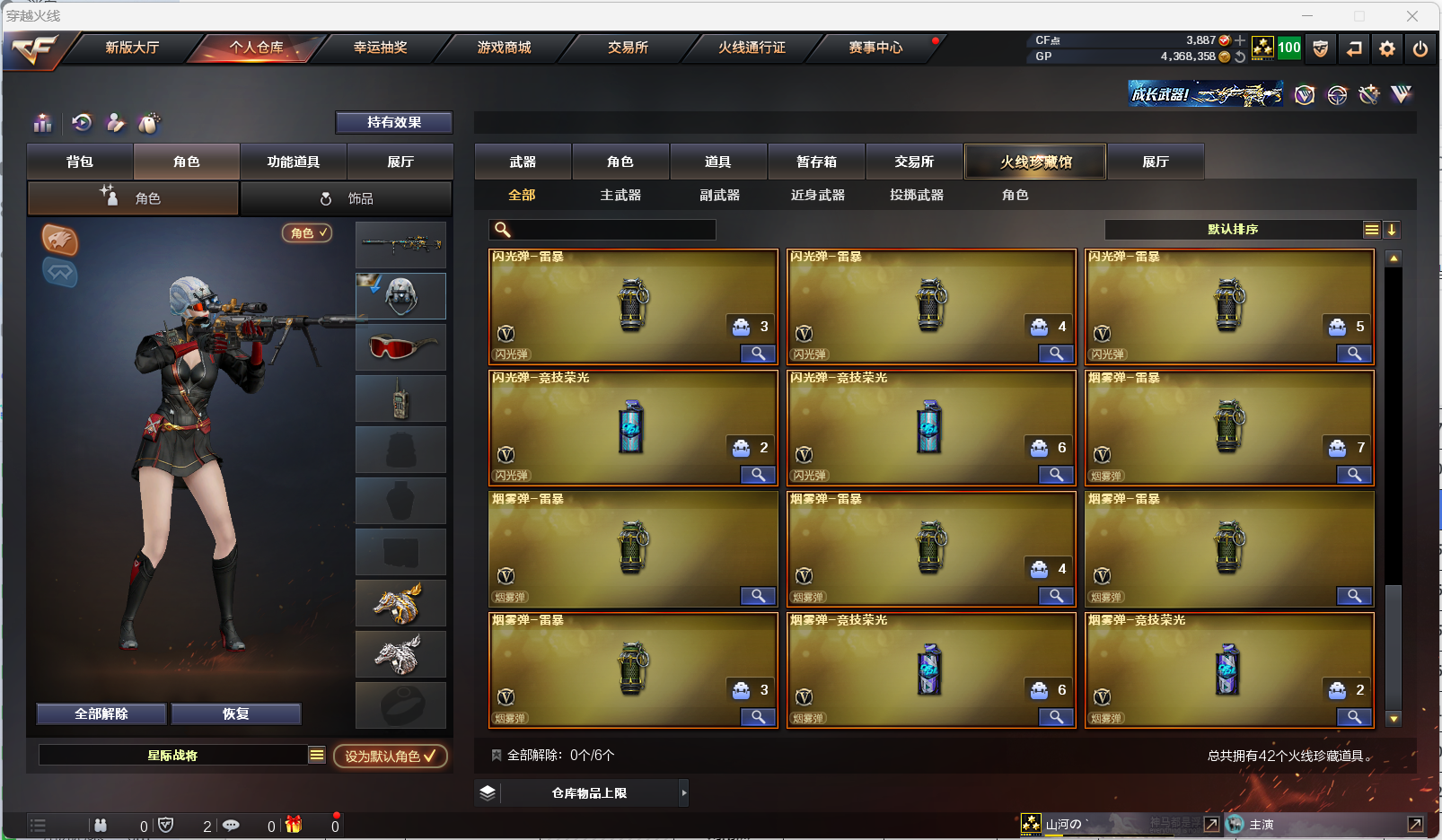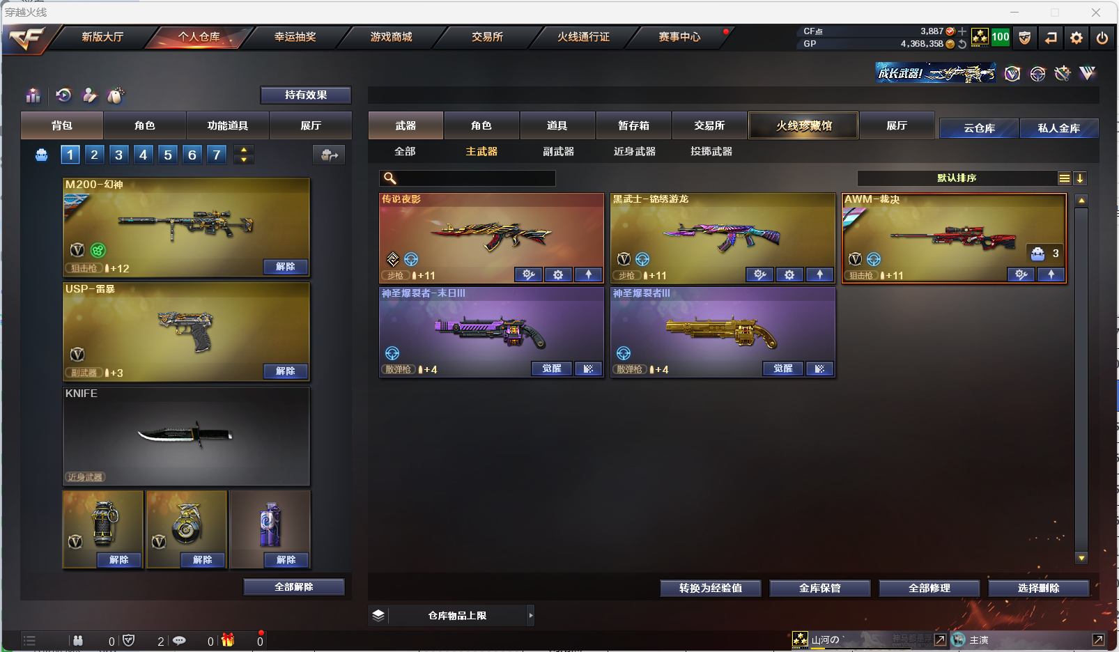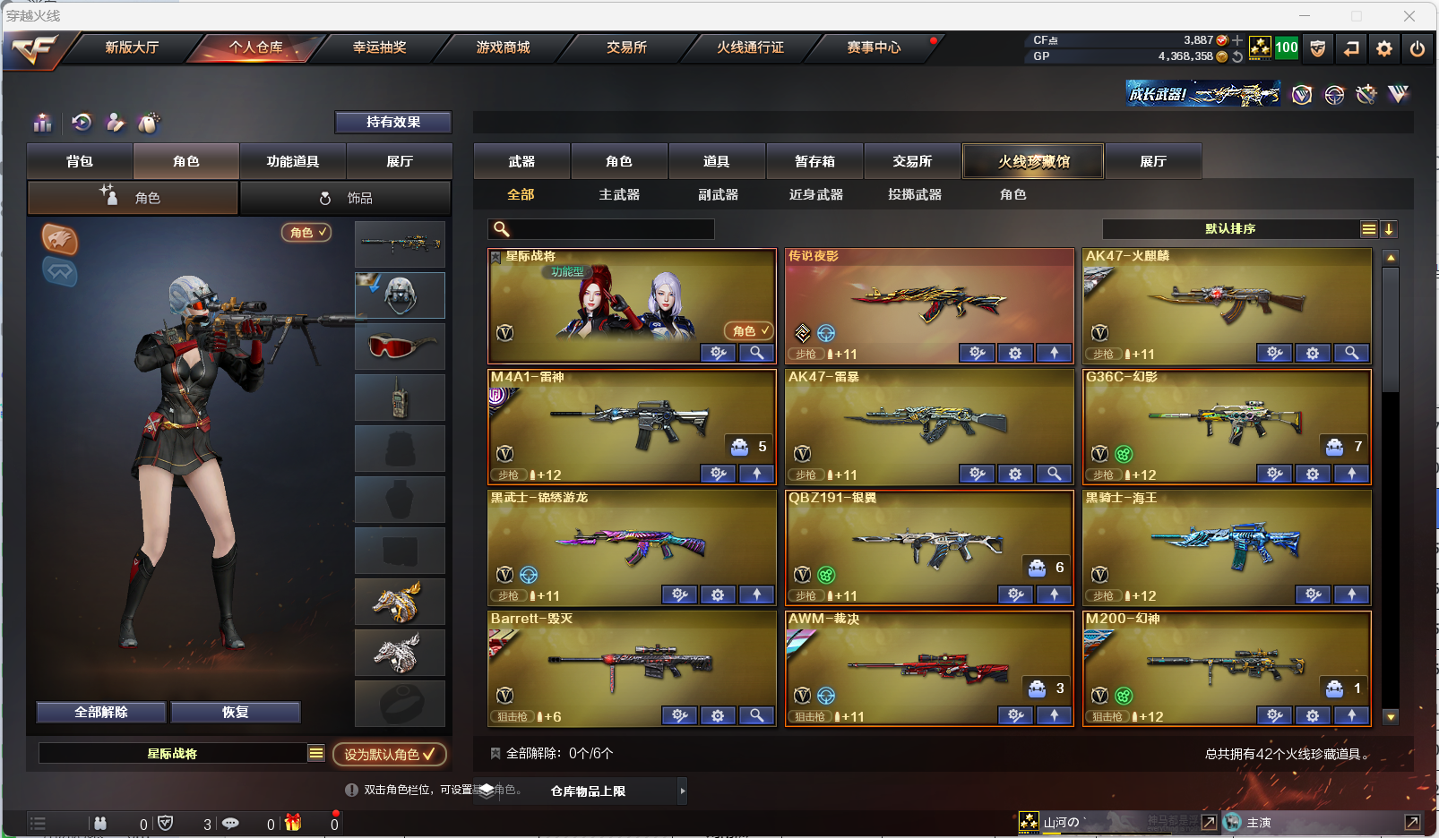 [6561223]f456 爆破四防 43v 传说夜影/m200幻神纸灯笼皮肤星火小队签名臻藏版皮肤/98k星神星神音效卡/g36c幻影q191银翼游侠/usp雷暴/毁灭sv皮肤/裁决流光秘银/火麒麟轻羽皮肤/雷神lgd冠军皮/金色蔷薇量子蔷薇皮肤/斯太尔蝴蝶/连体无畏 纪元套 掠夺套 黯夜套 西部正义 显卡爪刀 显卡幻影 盖亚狂徒 塑水宗狂徒 库存40940 剩余vp:13剩余r点:0 段位:超凡二