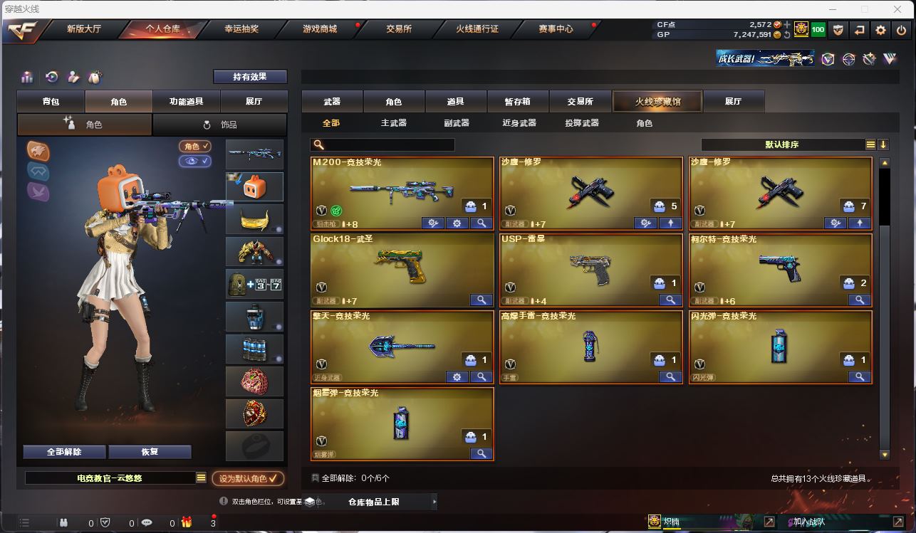 汤18233【广东一区/13V】【竞技荣光套/武圣套】【M200-竞技荣光】【柯尔特-竞技荣光/USP-雷暴】【Glock18-武圣】【火麒麟-CFSTAR/火麒麟-雷神/火麒麟-平天大圣】【无影-神兵利器】【沙鹰-修罗2】【擎天-竞技荣光】【电竞教官-云悠悠/王者凌霄/暗夜-X/潘多拉-X/救世主-X/铁骑荣耀/幻影/堕天使/复仇者】【M4A1-武圣】【Scar Light-像素】【Colt 1911-大黄蜂2/COP 357-青龙2/新USP-枪王排位奖励3】【迷你深渊冰龙】【神圣爆裂者-末日III】【斯泰尔-巧克力】【猫猫手套】【高爆手雷-竞技荣光/闪光弹-竞技荣光/烟雾弹-竞技荣光】【超级背包/防弹头盔5/防弹衣5/C4工具钳5/手雷包5/防化服2】