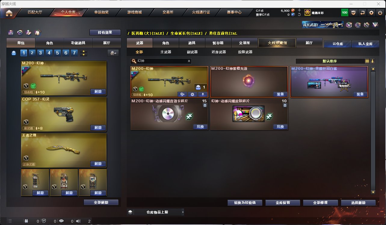 汤陕西一区/39V【幻神/荣耀世冠白鲨】【极光/极光音效卡】【USP-神工天巧2/OP 357-幻灵】【QBZ03-金色蔷薇】【雷神】【火麒麟】【毁灭-冠军之怒/毁灭耀金皮肤】【AK47-火麒麟】【无影-神兵利器】【Barrett-极光/Barrett-极光音效卡】【沙鹰-修罗2/修罗-CFSTAR】【天神-动感闪耀】【屠龙-动感闪耀】【龙啸-烈火龙威】【王者-迷迭香/暗夜-X/木兰/乔伊教练/青霞仙子/潘多拉-X/斯沃特-X/铁骑荣耀/复仇者】【Colt1911-小故障/Colt 1911-大黄蜂/新USP-枪王排位奖励2】【王者之锋】【高爆手雷-神工天巧/闪光弹-神工天巧2/烟雾弹-神工天巧3】【高爆手雷-幻灵6/闪光弹-幻灵4/烟雾弹-幻灵6】【炫金毁灭】【烟雾保护头盔/闪光护目镜/超级背包/防弹头盔4/防弹衣4/C4工具钳4/手雷包4/防化服】
