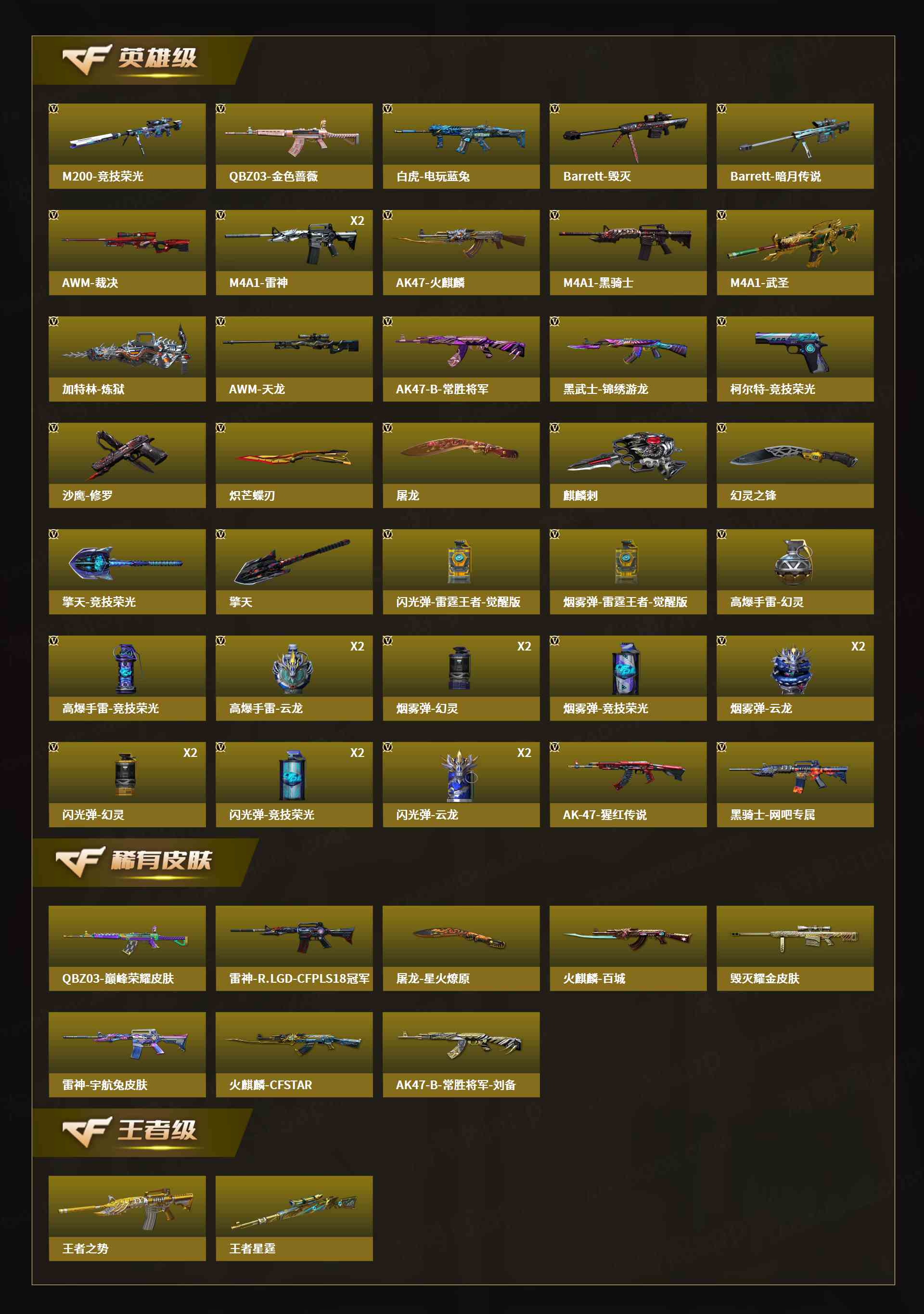 【Lv102 荣耀元帅】【可二次】【可排位】【VIP4】46V 2王者 传说影煞/M200-竞技荣光/王者星霆/QBZ03-巅峰荣耀皮肤/QBZ03-金色蔷薇/白虎-电玩蓝兔/雷神-R.LGD-CFPLS18冠军/M4A1-雷神/火麒麟-百城/AK47-火麒麟/毁灭耀金皮肤/Barrett-毁灭/黑骑士-摸金校尉/M4A1-黑骑士/M4A1-武圣/加特林-炼狱/AWM-天龙/AWM-裁决/9A91-烈火/柯尔特-竞技荣光/沙鹰-修罗/屠龙-星火燎原/屠龙/擎天/擎天-竞技荣光/(截图展示段位不代表实际段位,如赛季更新等不可抗拒因素发生变化、时限道具不保证所剩时间,其余道具看截图或咨询客服)