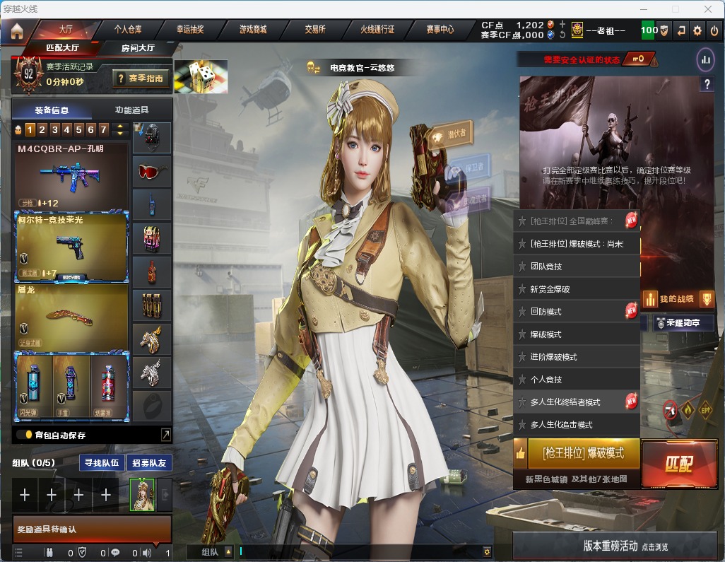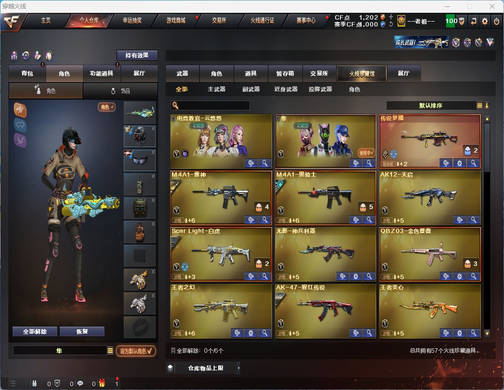 可二次 可修改实名 1传说武器 2炫金武器 55v武器 2v角色 10皮肤 可排位 新锐 武器:王者之幻-觉醒版炫金火麒麟ak-47-猩红传说闪光丹-雷霆擎天柯尔特-竞技荣光王者星神-觉醒版擎天-竞技荣光传说梦魇ak12-天启屠龙悦蓝-惊涛骇浪-觉醒版barrett-毁灭