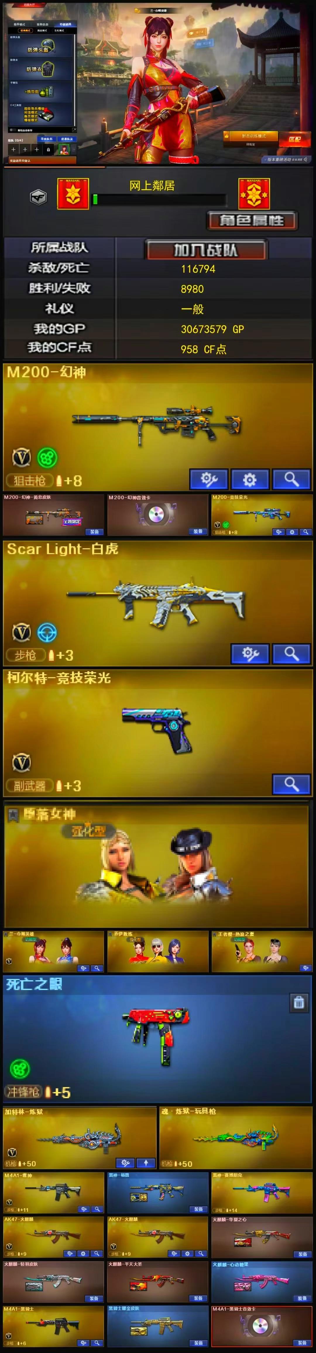 【★找回包赔★南部242】【可二次实名】【可排位】【呛王4】【会员等级vip6】【cf点958】【v武器数35】【幻神三件套】【幻神1皮】【死亡之眼】【神工天巧套装x2套】【竞技荣光套装x1套】【m200-幻神】【m200-幻神-黄忠皮肤】【m200-幻神音效卡】【m200-竞技荣光】【scar light-白虎】【柯尔特-竞技荣光】【堕落女神】【兰-巾帼英雄】【乔伊教练】【王者樱-热浪之夏】【m4a1-黑骑士音效卡】