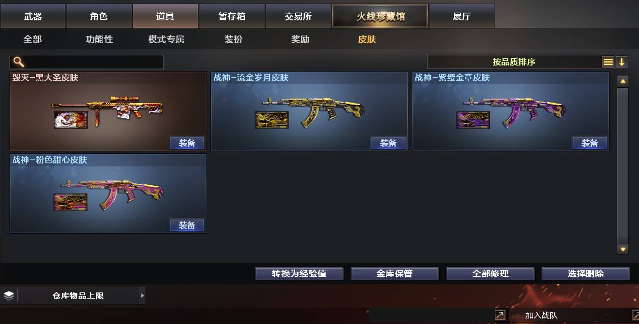[8854728]传说数量:1 王者数量:2 炫金数量:1 角色数量:3 英雄武器数量:48 皮肤数量:10 游戏区服:广东一区 游戏段位:呛王1