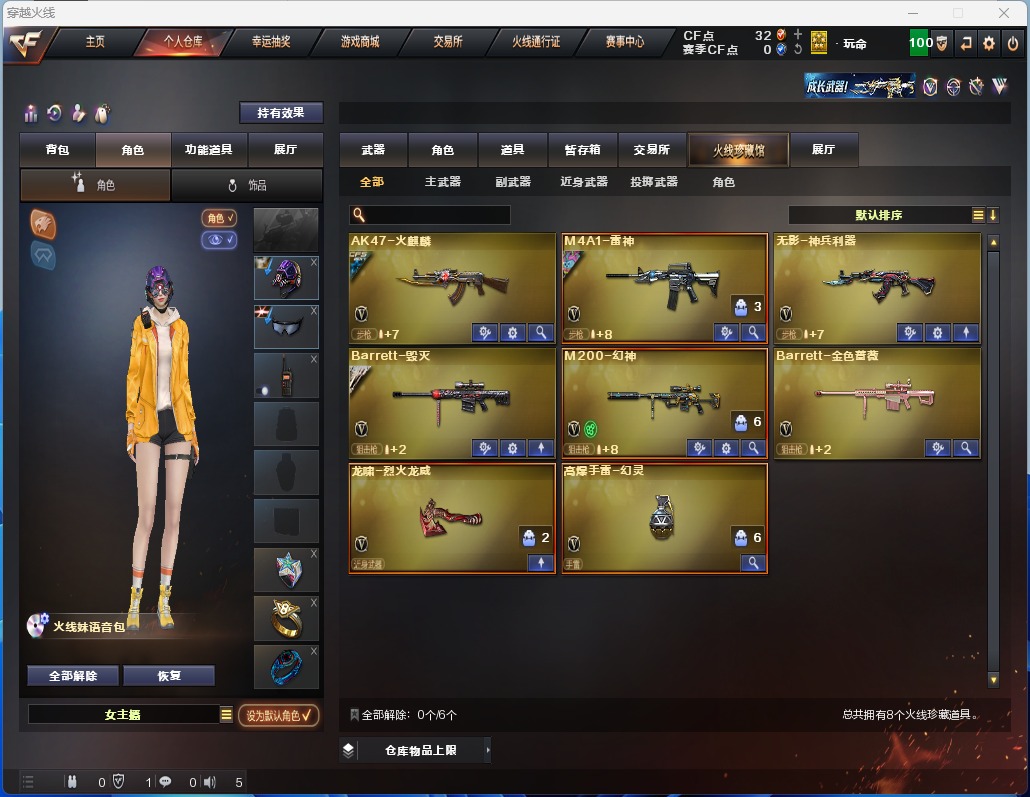 可二次 可修改实名 1炫金武器 8v武器 8皮肤 可排位 呛王 武器:barrett-金色蔷薇无影-神兵利器高爆手蕾-幻灵barrett-毁灭龙啸-烈火龙威m4a1-雷神ak47-火麒麟m200-幻神炫金无影