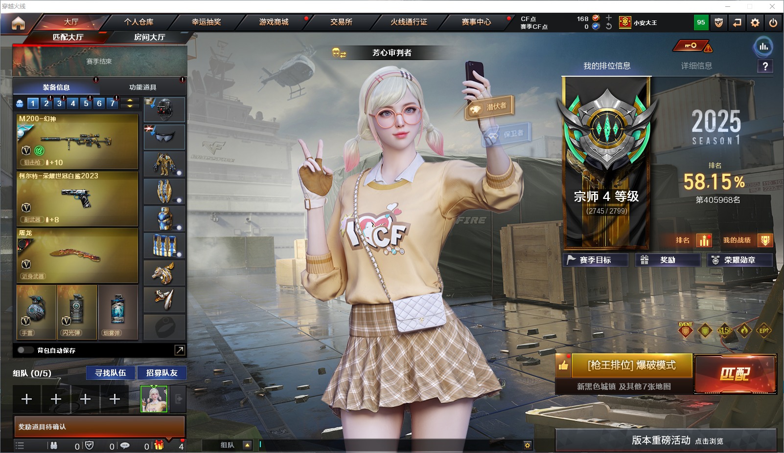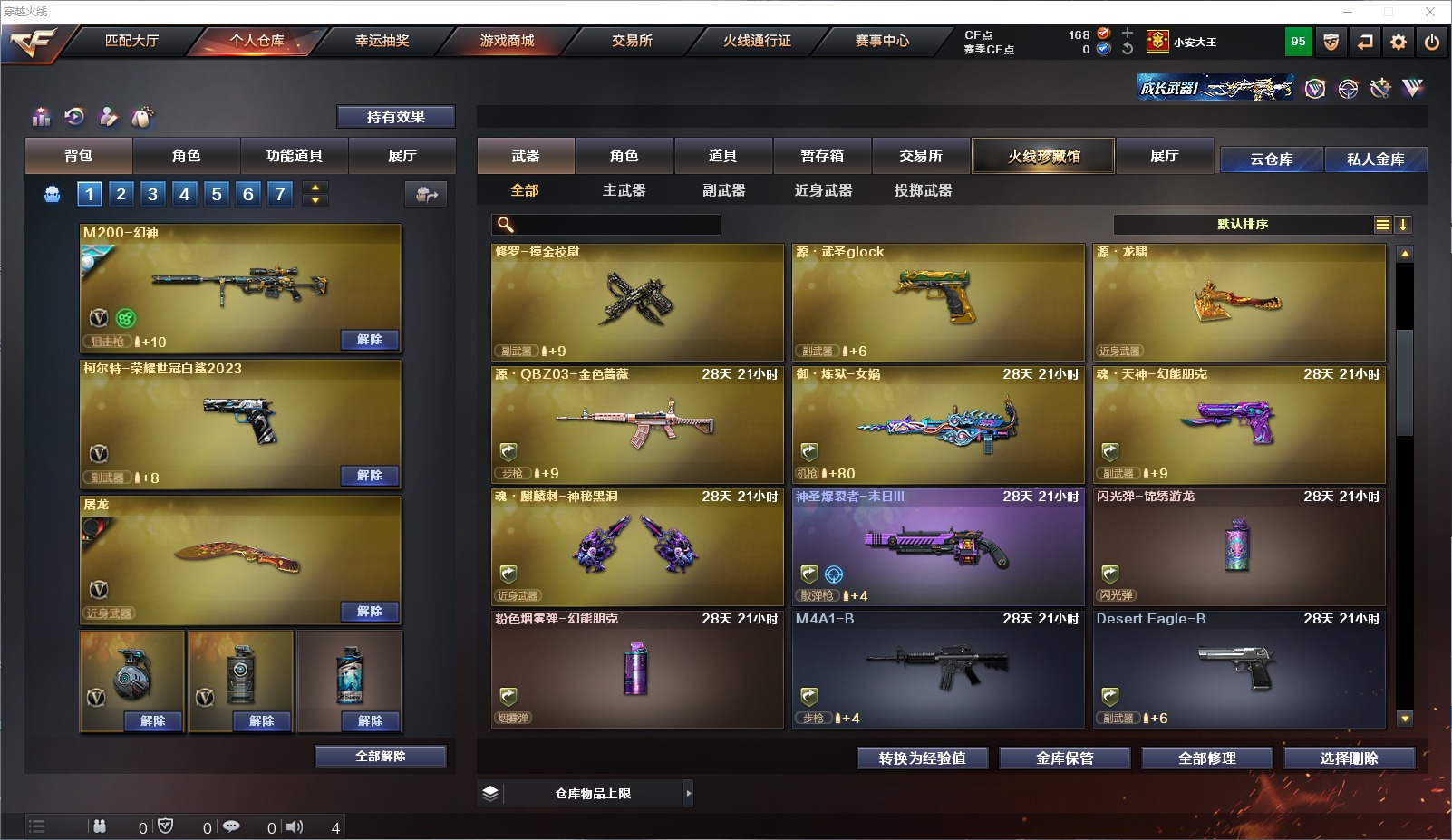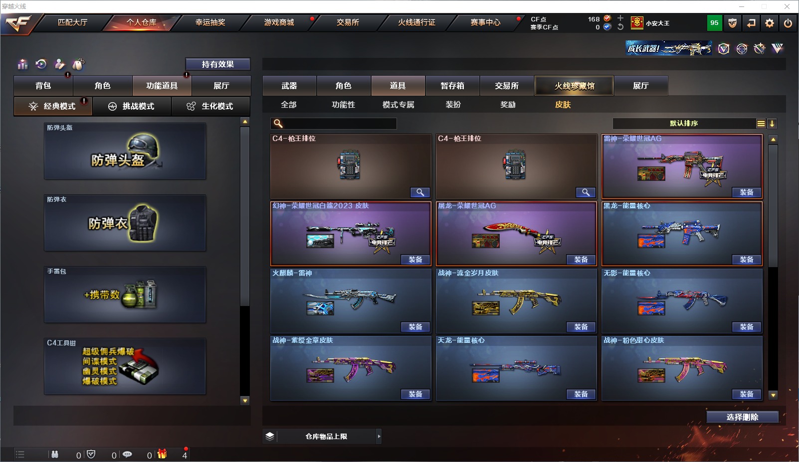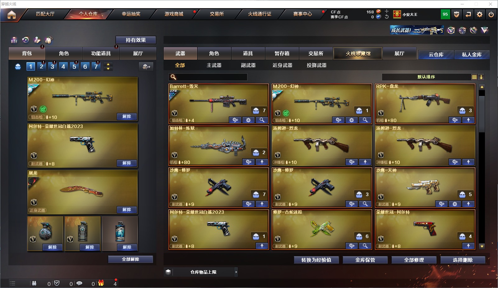 可二次 可修改实名 1炫金武器 27v武器 13皮肤 可排位 宗师 武器:荣耀世冠-火麒麟高爆手蕾-雷霆炫金毁灭柯尔特-荣耀世冠白鲨2023m4a1-龙血ak47-b-战神ak-47-猩红传说闪光丹-雷霆m4a1-黑龙屠龙修罗-古蛇迷踪barrett-毁灭m4a1-雷神a