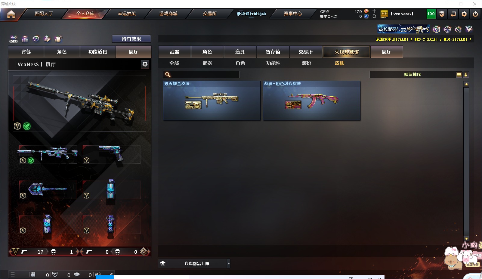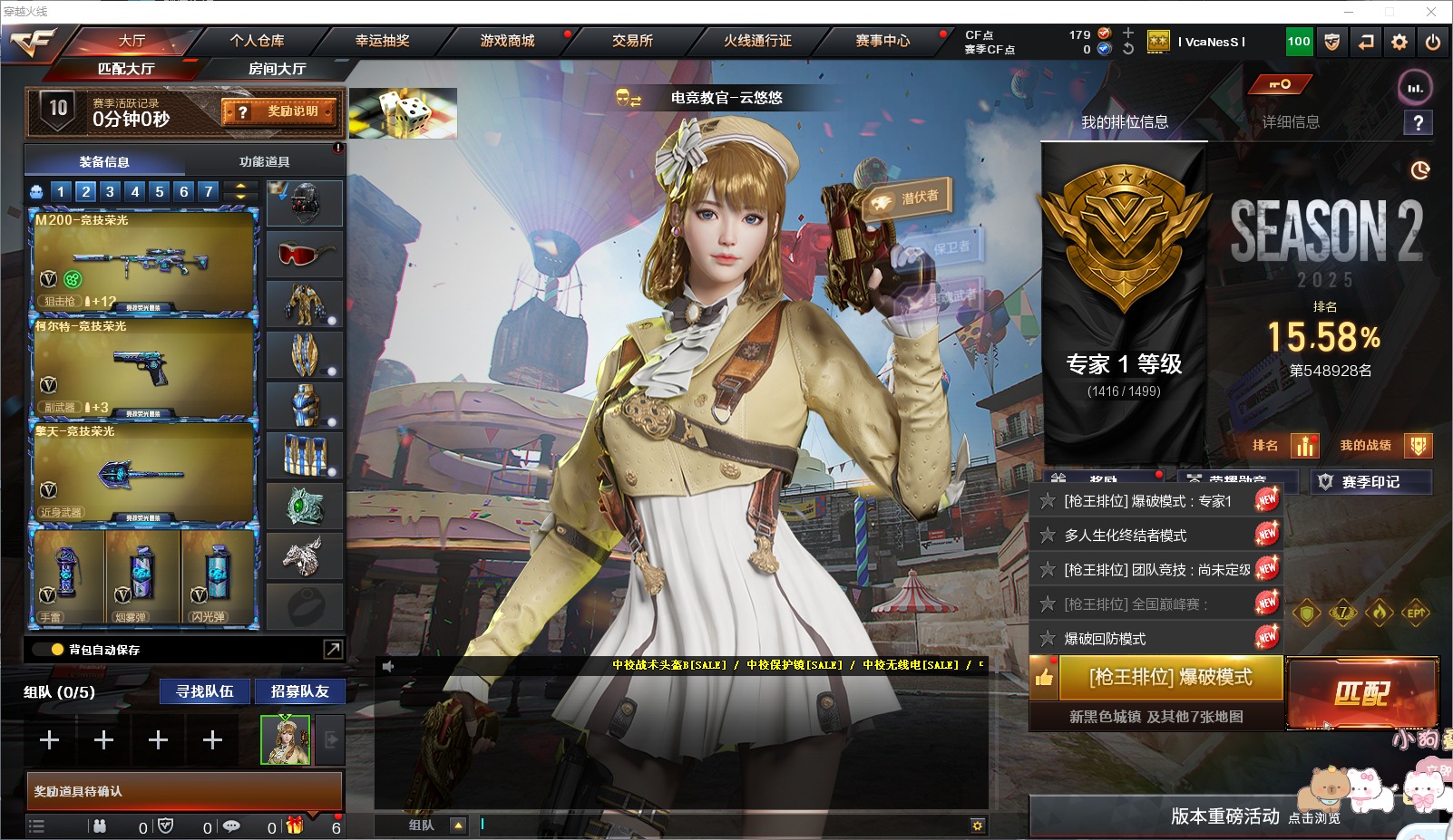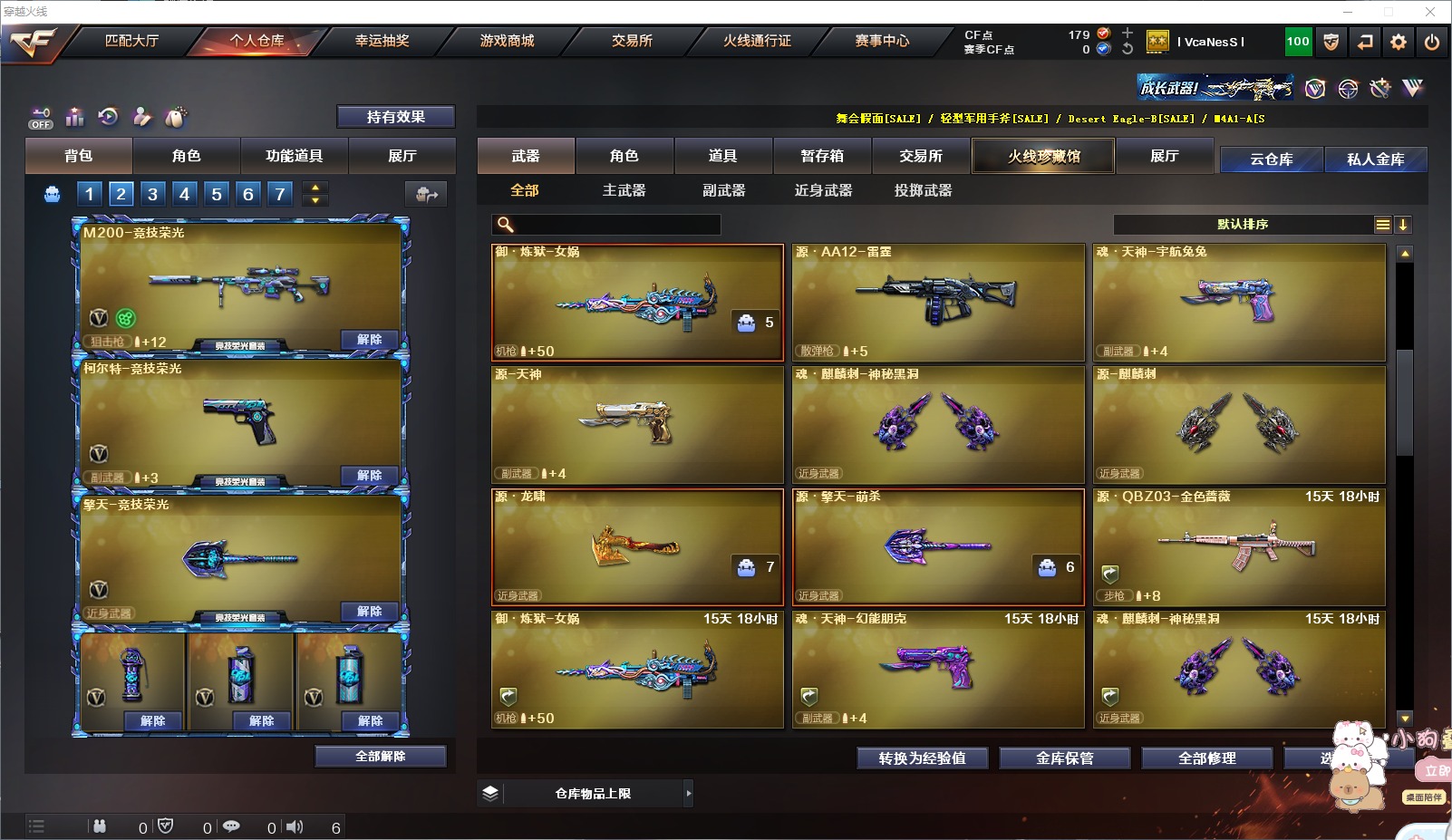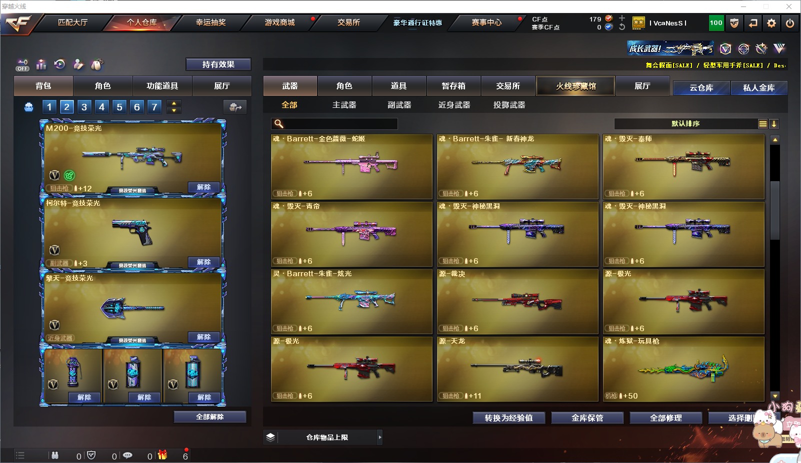 1传说角色 1炫金武器 17v武器 可二次 可修改实名 优质装备:m200-幻神m200-竞技荣光ak47-无影m4a1-死神barrett-毁灭柯尔特-竞技荣光擎天-竞技荣光barrett-暗月传说机械迷城-穹宇 排位资格:有 王者武器:q-03-王者蔷薇-觉醒版王者之戮-