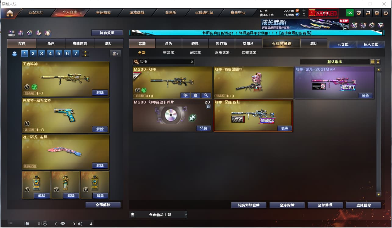 2166002-双色幻神2.2w点卷)cf北部/河南1区/38v/m200幻神 宠儿皮 星耀皮/m200竞技荣光/王者风神/cop云龙/柯尔特冠军之特/g36c幻影/黑龙/雷神/天启/毁灭/王者芳薇/3修罗/龙啸/6皮可排
