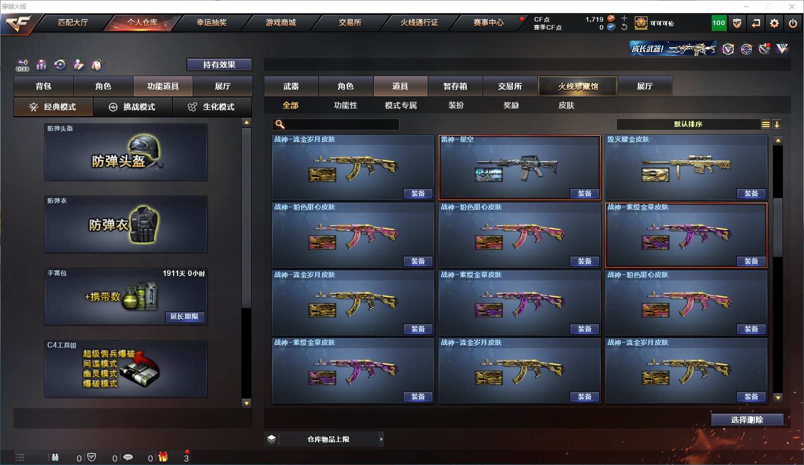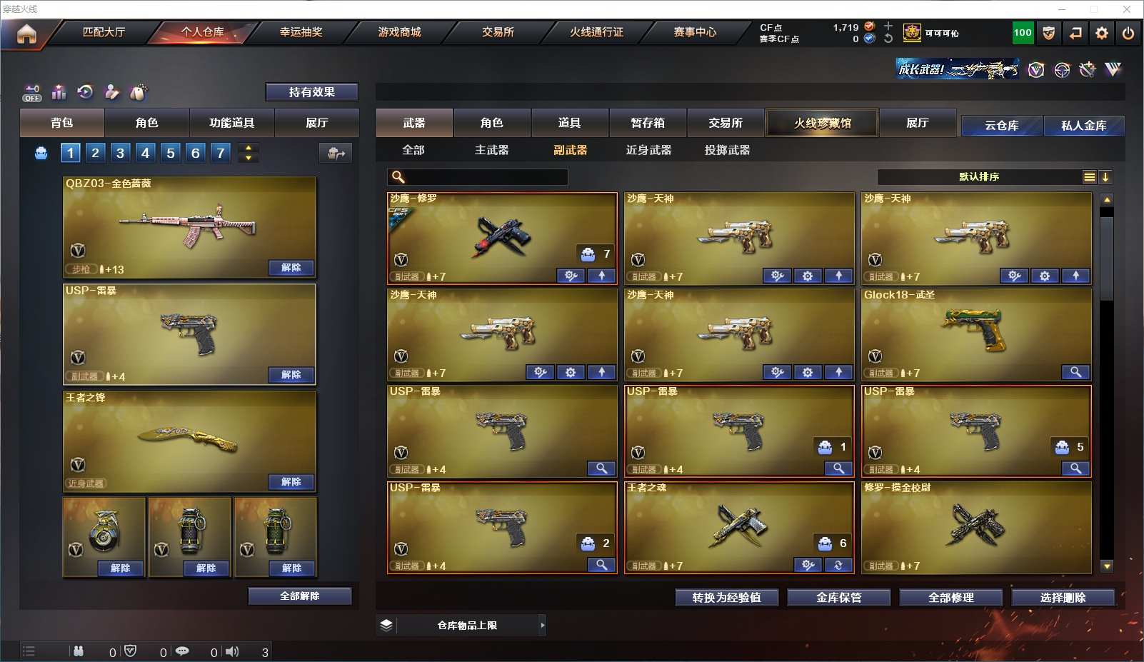 173V极品副手4把usp雷暴✨M200幻神✨qbz金色蔷薇✨蝴蝶炼狱6烈6盘✨四防王者葵貂蝉✨雷神黑龙火麒麟毁灭基础V齐全✨雷暴套