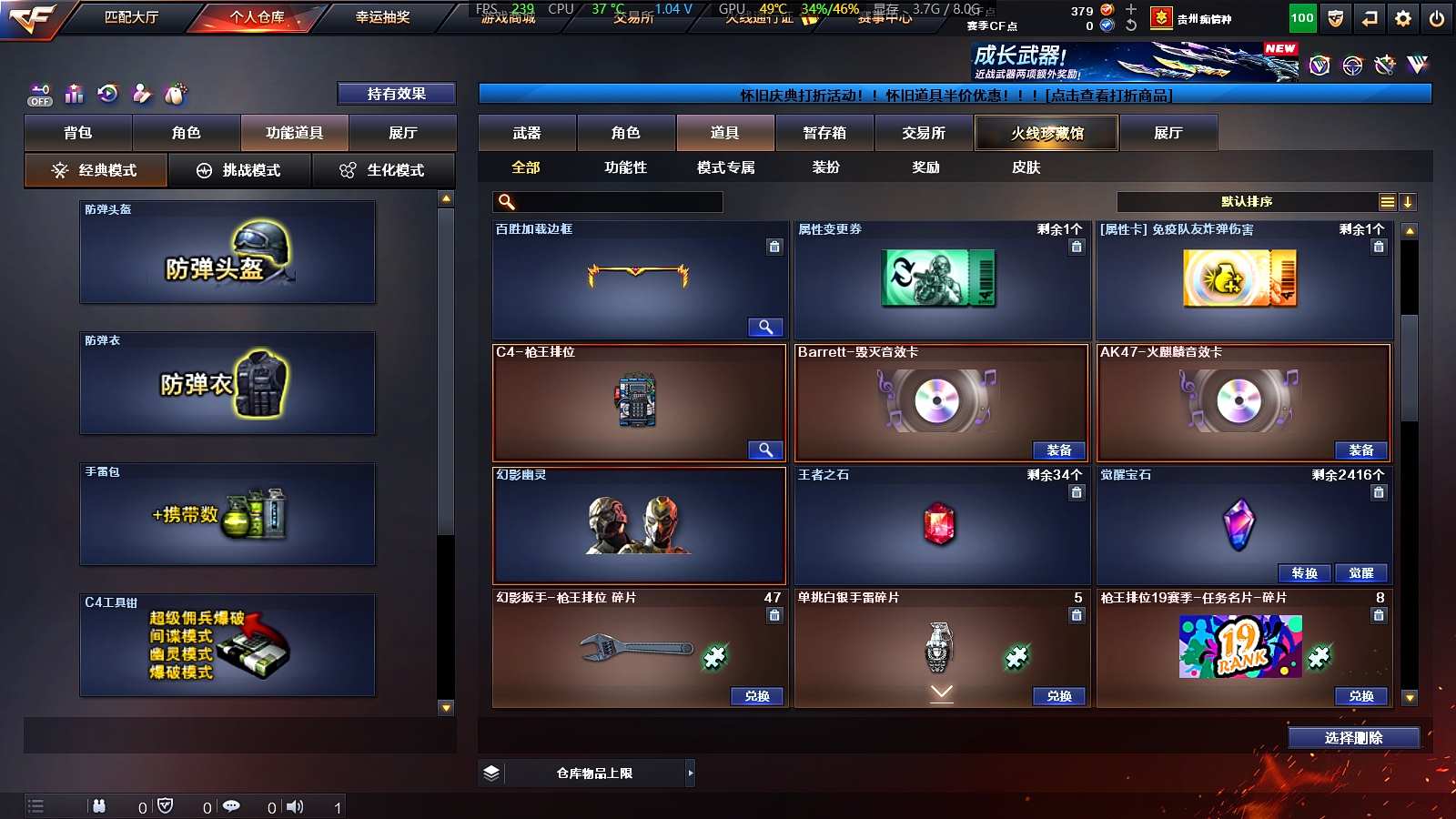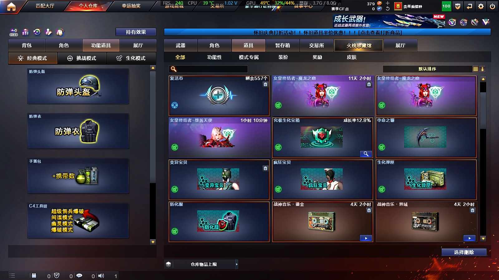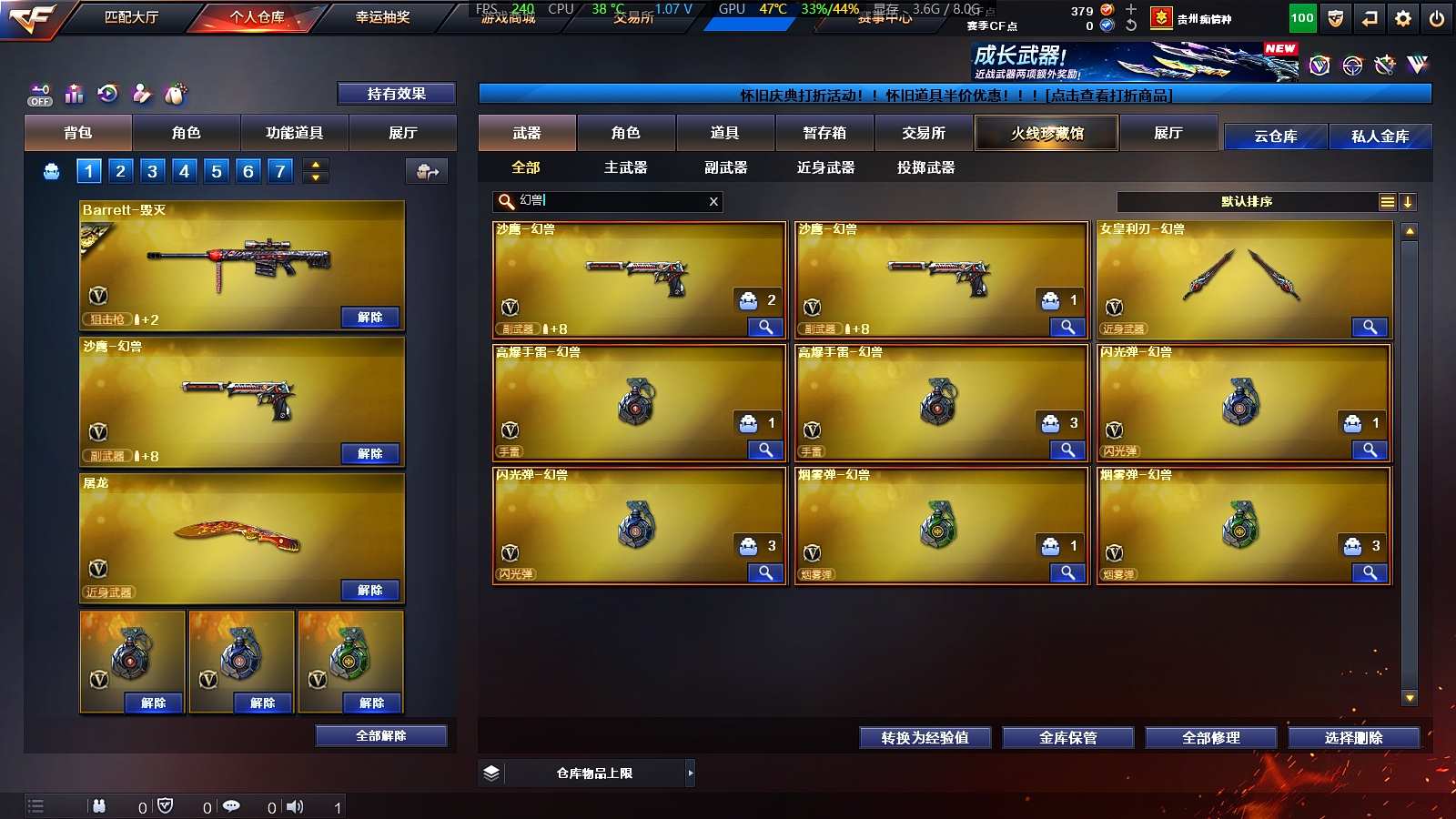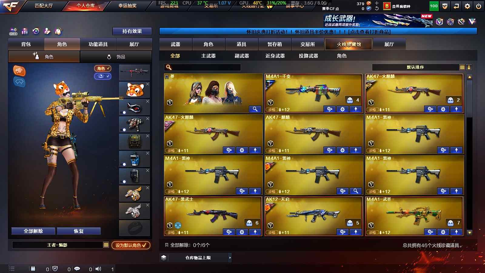 46V✨2套幻兽套✨双面神毒刺-6烈2炼狱生化道具齐全✨毁灭耀金毁灭音效卡✨火麒麟2皮火麒麟音效卡✨基础V齐全✨4防王者魅影✨
