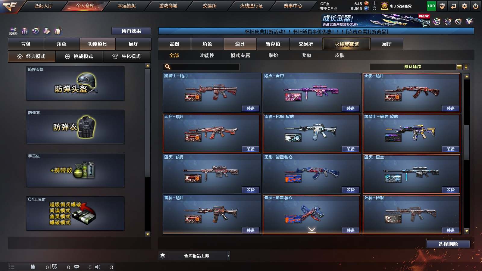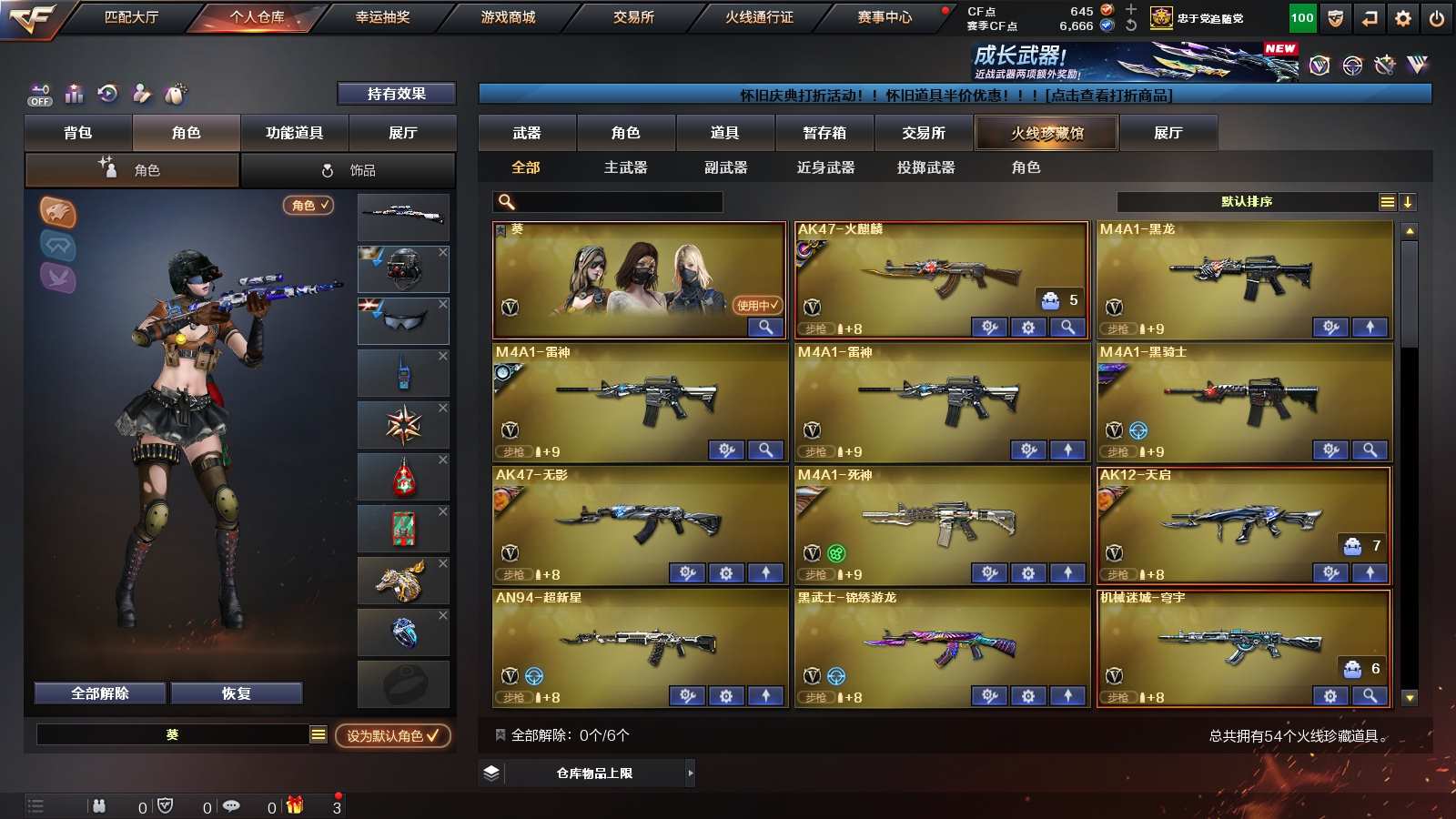 54V✨星神璀璨星神音效卡✨蝶刃破浪逐光✨M200竞技荣光✨qbz蔷薇黑骑士三件套✨6烈1盘3炼狱生化道具齐全✨