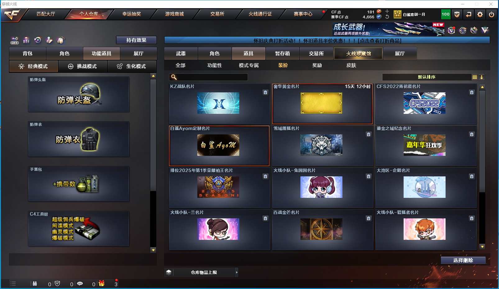 2302yc-北部-吉林一区-极品爆破号 【可排位】【25V/1传说】【星神-长生圣莲】【M4A1-雷神/雷神-机甲刑天皮肤/雷神-宇航兔皮肤】【AK47-火麒麟】【M4A1-黑骑士】【M4A1-黑龙】【HK417-朱雀】【AWM-裁决】【加特林-炼狱】【沙鹰-修罗2】【擎天2】【兰-海滩派对/乔伊教练/救世主-X】【猫猫手套】【防弹头盔3/防弹衣3/C4工具钳3/手雷包3/防化服3】更多亮点详情请看图