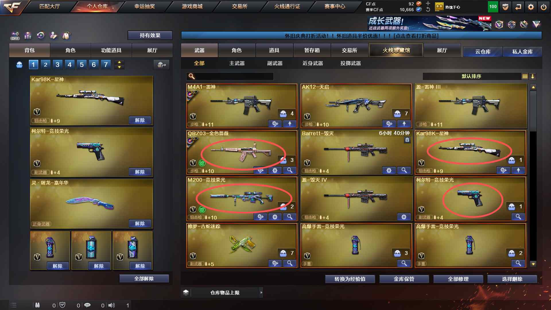 1958广东一区极品小号21v【M200竞技荣光】【98k星神】【qbz金色蔷薇-Hearshot皮肤】【雷神-Hearshot皮肤】【柯尔特-经济荣光】【四防云悠悠】【南栀出品必是精品-买卖账号认准南栀】