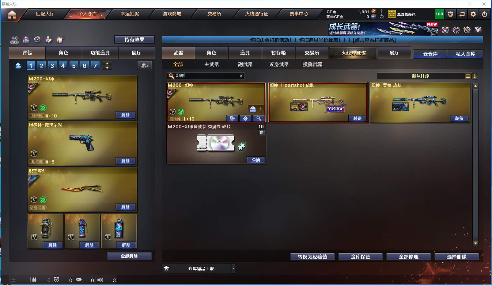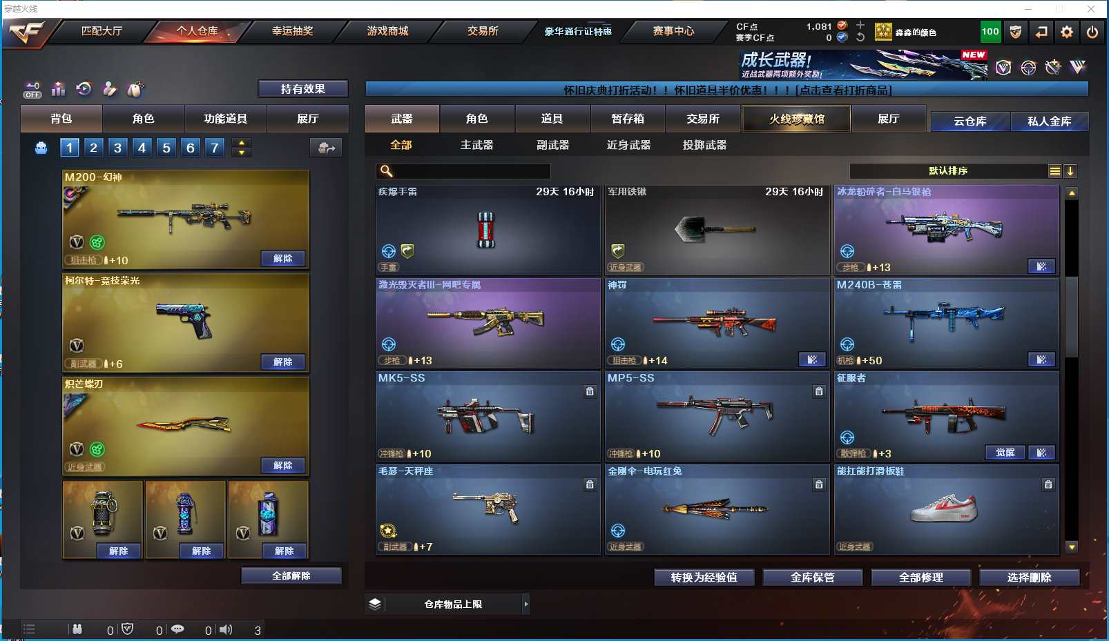 1937yc-西部-陕西一区-极品爆破号 【可排位】【28V】 【M200-幻神/幻神-曹操 皮肤/幻神-Heartshot 皮肤】【炽芒蝶刃/炽芒蝶刃-破浪逐光 皮肤】【柯尔特-竞技荣光】【QBZ03-金色蔷薇】【M4A1-雷神/雷神-宇航兔皮肤】【Barrett-毁灭/毁灭-荣耀之怒】【M4A1-黑骑士/黑骑士-电玩青兔皮肤】【AK47-黑武士】【AWM-天龙】【沙鹰-修罗】【沙鹰-天神2】【兔囡囡/零-水下丽影/潘多拉-X/救世主-X/影武者-X/堕天使/复仇者】【白虎-电玩蓝兔/AK47-B-身先士卒/AK-47-猩红传说】【AA-12-雷霆/AK47-黑鲨/AK12-天启】【Barrett-暗月传说2】【Colt 1911-大黄蜂/新USP-枪王排位奖励】【金刚伞-电玩红兔】【冰龙粉碎者-白马银枪/征服者】【斯泰尔-巧克力】【高爆手雷-竞技荣光/闪光弹-竞技荣光/烟雾弹-竞技荣光】【闪光弹-雷暴】【闪光弹-雷霆】【炫金黑龙】【超级护目镜/烟雾保护头盔/超级背包/防弹头盔3/防弹衣3/C4工具钳3/手雷包3/防化服】 更多亮点详情请看图