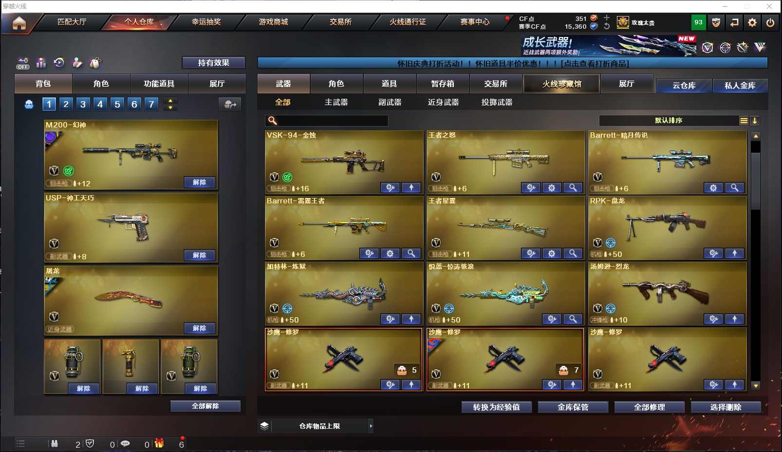 ✨HLL四防传说影煞夜影破晓2把炽芒蝶刃✨八面凌龙满皮玩偶带卡✨幻神音效卡巅峰CFS22电流皮✨星神冠军之星21冠军漫游皮王者星霆✨裁决音效卡异化皮VSK金蚀✨2把COP雷霆COP云龙USP雷暴USP神功天巧无冕之王✨白虎冠军之虎✨G36C幻影✨金色蔷薇CFS24皮✨云龙套✨天罚雷神毁灭音效卡✨四防晴雅四防华四防机械姬四防雨墨四防王者沙漠