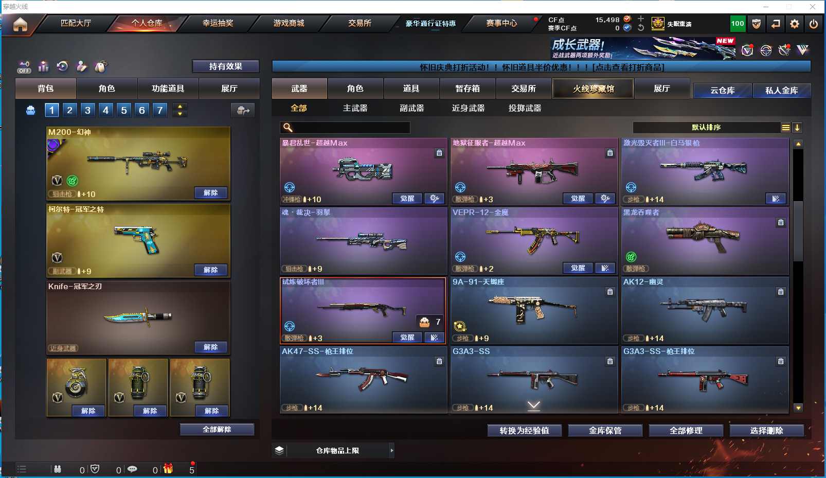 2101yc-南部-广西一区-极品爆破生化双全装号【可排位】【可二次实名】【158V/5传说】【传说女帝/传说暗裔/传说圣灵/传说辉光】【鹰/荒漠琉璃】【神工天巧套/6烈龙/6盘龙/6炼狱】【M200-幻神/M200-幻神音效卡/幻神-巅峰荣耀/幻神-丹凤/幻神-青鹤/幻神-降龙/M200-幻神-黄忠皮肤】【Kar98K-星神/星神-璀璨皮肤2】【王者星神/白虎之魄/王者白虎】【Knife-冠军之刃/黄金猫猫手套-白鲨】【柯尔特-冠军之特/USP-神工天巧】【Scar Light-白虎/Scar Light-白虎音效卡/Scar Light-白虎-暗星/白虎-大汉风骨/白虎-电玩粉兔皮肤】【QBZ03-金色蔷薇2/QBZ03-金色蔷薇音效卡/QBZ03-冠军之薇/金色蔷薇-枪娘阿敏 皮肤】【QBZ03-天罚】【M4A1-雷神/M4A1-雷神音效卡/雷神-荣耀之魄/M4A1-战神赵云/雷神-宇航兔皮肤/雷神-耀金皮肤/雷神-星空/雷神-暗月/雷神-虎将2】【柯尔特-电竞装甲/COP 357-雷霆王者】【Barrett-毁灭/Barrett-毁灭音效卡/毁灭-荣耀之怒/毁灭-星空/毁灭-战神张飞/毁灭耀金皮肤/毁灭-暗月2/毁灭-黑曼巴 皮肤】【AK47-火麒麟3/AK47-火麒麟音效卡/火麒麟-百城/火麒麟-CFSTAR/火麒麟-大唐荣光/火麒麟-华夏之心/火麒麟-战神关羽/火麒麟-平天大圣】【M4A1-黑骑士/M4A1-黑骑士音效卡2/黑骑士-冠军之势/黑骑士-战神马超/黑骑士-地狱火/黑骑士-电玩青兔皮肤/黑骑士耀金皮肤】【M4A1-黑龙/黑龙-冠军之武】【HK417-朱雀】【AK47-无影/无影-神兵利器/无影-能量核心】【AK47-黑武士/黑武士-锦绣游龙】【AWM-天龙2/天龙-CFSTAR/天龙-能量核心】【Barrett-极光/极光-能量核心】【AWM-裁决/AWM-裁决音效卡】【M4A1-死神/M4A1-千变】【汤姆逊-烈龙6】【RPK-盘龙6】【加特林-炼狱6/炼狱-悦蓝】【斯泰尔-蝴蝶/死亡之眼2】【沙鹰-修罗3/修罗耀金皮肤/修罗-能量核心】【沙鹰-天神】【麒麟刺2】【擎天2/擎天-冠军之击2/擎天-竞技荣光/擎天-惨叫迹】【屠龙3/屠龙-秘银】【龙啸/龙啸-冠军之啸】【王者沙漠玫瑰/枪娘樱/女主播/王者凌霄/王者-迷迭香/魅影/雨棠/龙儿/暗夜-X/兰-海滩派对/兰-巾帼英雄/月兔特工/灵动武士/狐影/堕落女神/幽/兔囡囡/零-水下丽影/灵狐者-黄金海岸/妲己/雪莉杨/蜀雪/潘多拉-X/救世主-X/铁骑荣耀/幻影/堕天使/复仇者】【M4A1-神工天巧/M4A1-雷霆王者/M14EBR-玄武/M4A1-青龙/M4A1-龙血/M4A1-猎神】【白虎-电玩蓝兔/AK47-B-常胜将军2/AK47-B-身先士卒/AK47-B-战士2/AK47-B-战神2/AK-47-猩红传说5】【AA-12-雷霆/AK47-黑鲨/AK12-天启/天启-暗月2】【AN94-超新星/超新星-悦享】【Barrett-雷霆王者/Barrett-朱雀/Barrett-电竞装甲/Barrett-暗月传说2】【毛瑟-玄龙/Colt 1911-大黄蜂2/COP 357-青龙/新USP-枪王排位奖励4】【雷霆王者之锋/斩魔刀/斩神刀2/金刚伞/金刚伞-电玩红兔/迷你深渊冰龙/唐刀-神工天巧/尼泊尔-电竞装甲】【VEPR-12-金魔/激光毁灭者III-白马银枪】【黑龙吞噬者/斯泰尔-巧克力/轻型军用手斧-镜2】【牛牛-AK47/C.A.T/白虎-迷你小艾/M4A1-雷神-精英刀锋/M4A1-小黄鸡/COP-旗袍/COP-白鲨/火麒麟-灵狐/M37-葵/毁灭-孙三炮/天龙-曼陀罗/兔宝宝/黄金迷你深渊冰龙2/黄金迷你裂空之翼3/M4A1-斯沃特/萌兔-斯泰尔/王者M200-无畏金戈/王者Barrett-英勇金戈/金色小号】【王者青龙/王者云击/王者森决/王者森决/王者之心/王者之刺/王者冰魄/王者之锋/王者龙血】【高爆手雷-竞技荣光/闪光弹-竞技荣光/烟雾弹-竞技荣光】【高爆手雷-雷暴/闪光弹-雷暴/烟雾弹-雷暴】【高爆手雷-雷霆/闪光弹-雷霆/烟雾弹-雷霆】【高爆手雷-雷霆王者4/闪光弹-雷霆王者/烟雾弹-雷霆王者】【高爆手雷-神工天巧2/闪光弹-神工天巧2/烟雾弹-神工天巧2】【闪光弹-幻灵/烟雾弹-幻灵】【闪光弹-电竞装甲/烟雾弹-电竞装甲】【炫金无影/炫金雷神/炫金修罗】【枪娘语音包-阿敏】【透明护目镜/烟雾保护头盔/闪光护目镜/超级对讲机/超级背包/炫彩背包/防弹头盔3/防弹衣2/C4工具钳2/手雷包2/防化服2】 多亮点详情请看图