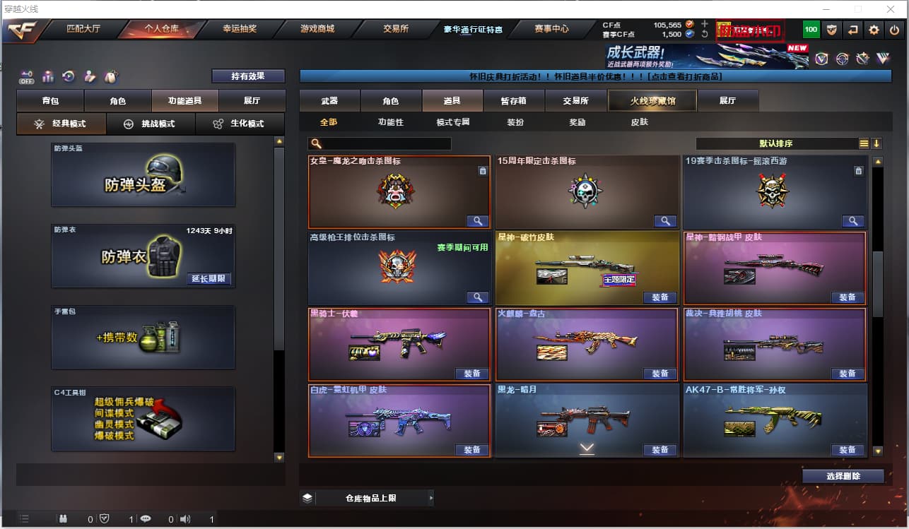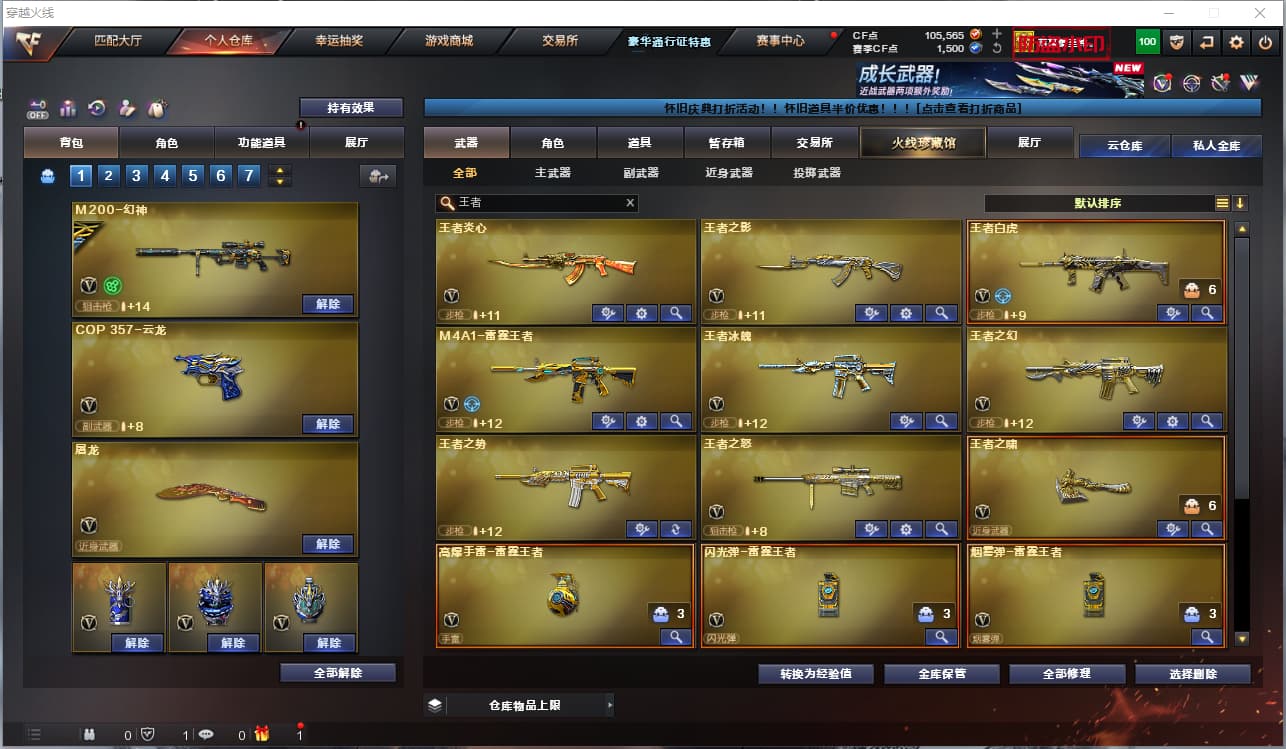 2233582-传说圣谕 幻神三件套 双色星神 白虎带皮 裁决三件套 天戎 冥王 10wcf点)cf东部/江苏二区/81v/传说圣谕/幻神 周瑜 幻神音效卡 幻神蓝粉色光效/星神 黯钢战甲 破竹 星神紫橙光效/白虎 霓虹机甲 白虎紫色光效 王者白虎/裁决 典雅胡桃 裁决音效卡/q金色蔷薇/famas天戎/朱雀/usp冥王/cop云龙/毁灭三件套/火麒麟三件套/黑骑士三件套/雷神三件套