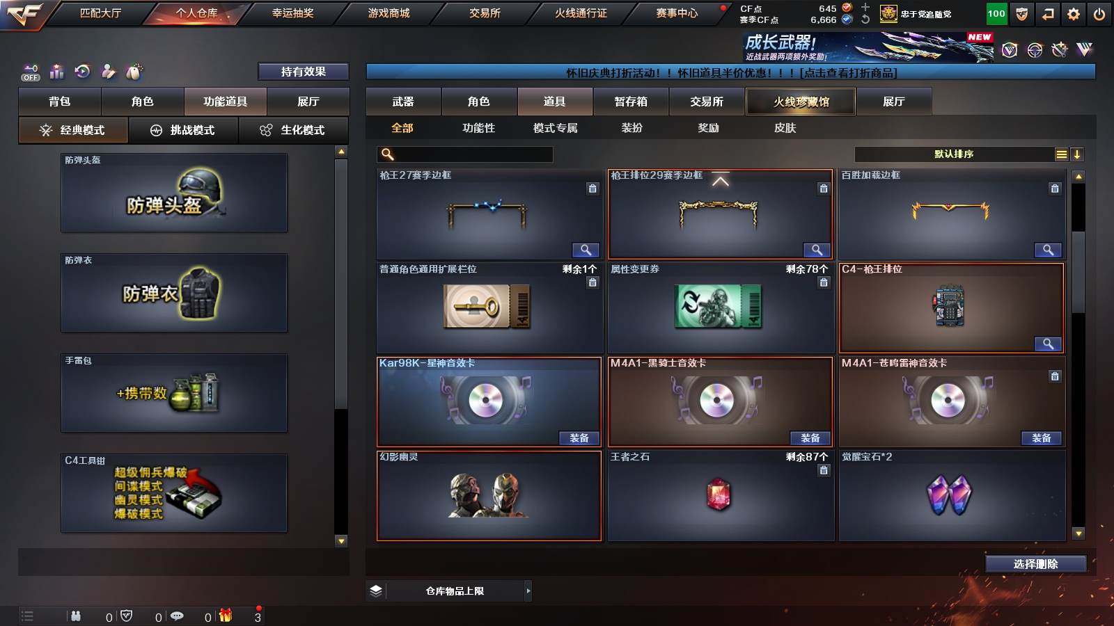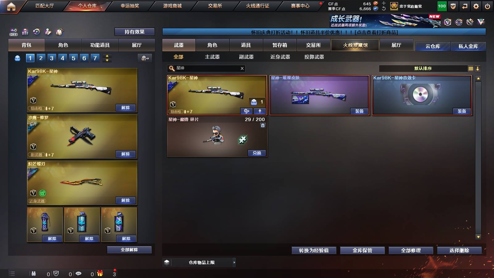 54V✨HLL星神璀璨星神音效卡✨蝶刃破浪逐光✨M200竞技荣光✨qbz蔷薇黑骑士三件套✨6烈1盘3炼狱生化道具齐全✨