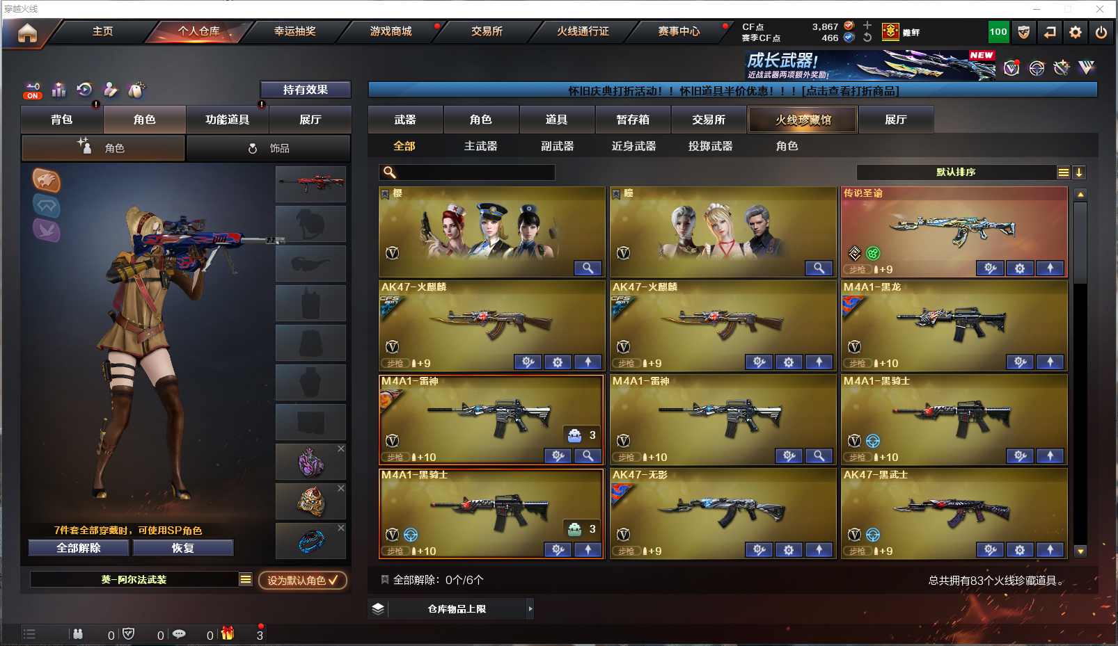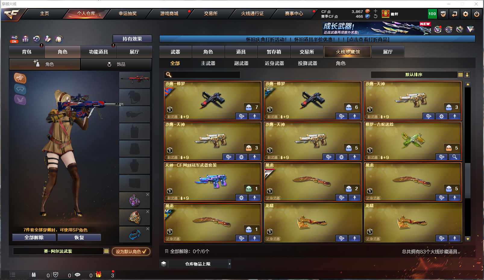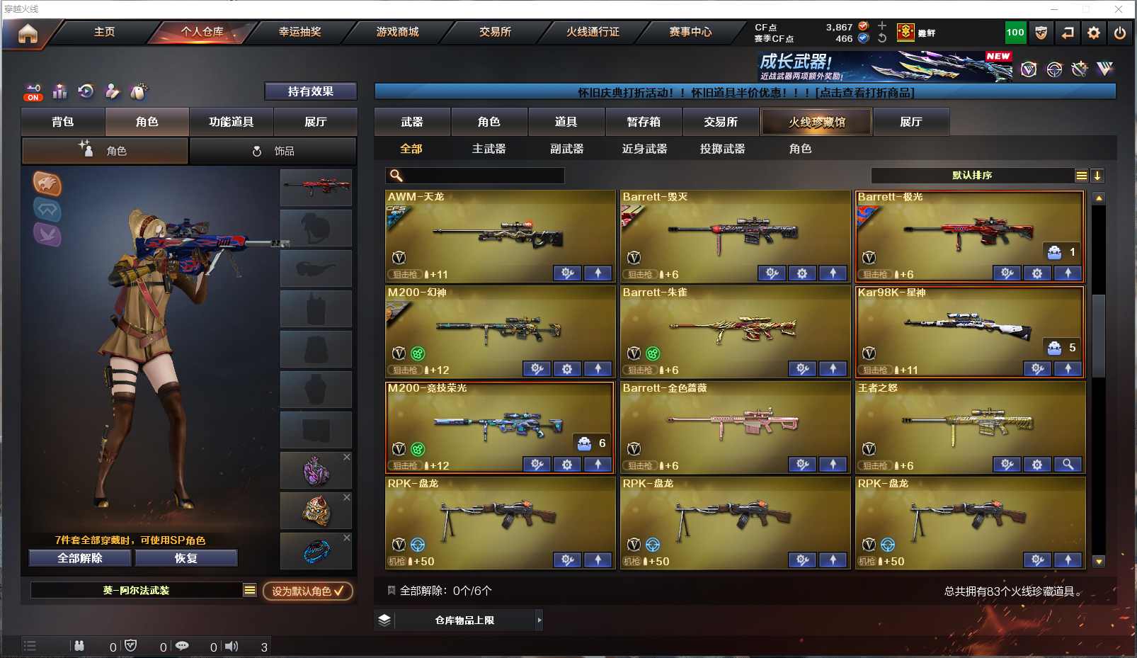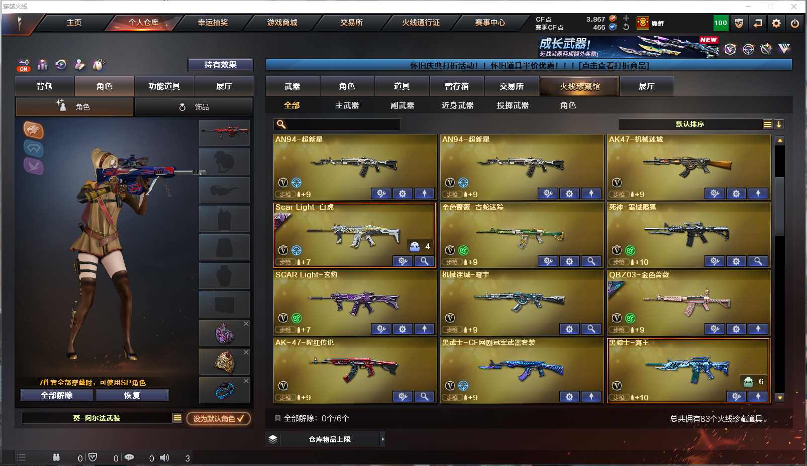 077-c【北部 河南一区】【可二次】【可排位】83V 1传说 7王者 2炫金【传说圣谕】【M200-幻神幻神-黄忠】【M200-竞技荣光】【Kar98K-星神Kar98K-星神音效卡】【Scar Light-白虎白虎-暗星】【QBZ03-金色蔷薇金色蔷薇-破浪逐光】【火麒麟火麒麟-轻羽火麒麟-平天大圣火麒麟-CF STAR】【黑龙黑龙-暗月黑龙-能量核心】【雷神雷神-暗月雷神-能量核心M4A1-雷神音效卡】【黑骑士】【毁灭毁灭-SV-CFPLS16冠军毁灭-荣耀之怒Barrett-毁灭音效卡】【极光极光-能量核心】【天龙天龙-CF STAR天龙-能量核心】【4盘龙】【6烈龙】【加特林-炼狱】【3沙鹰-修罗】【屠龙屠龙-星耀屠龙-荣耀之锋】M4A1-雷霆王者 王者之怒 王者之灵 雷霆王者之锋 AK47-无影 AK47-黑武士 AN94-超新星 AK47-机械迷城 SCAR Light-玄豹 丛林匕首-玄豹 斩神刀-雷暴 龙啸 擎天 麒麟刺等 【小人枪】HK417-朱雀-蛇隐宗 【角色】樱 瞳 战地猎狐 葵-阿尔法武装 蛇隐宗 雪域霜狐等 截图展示段位不代表实际段位,如赛季更新等不可抗拒因素发生变化、时限道具不保证所剩时间,其余道具看截图或咨询客服) 【小述账号 安全无忧】