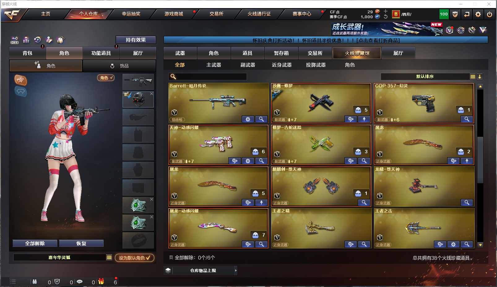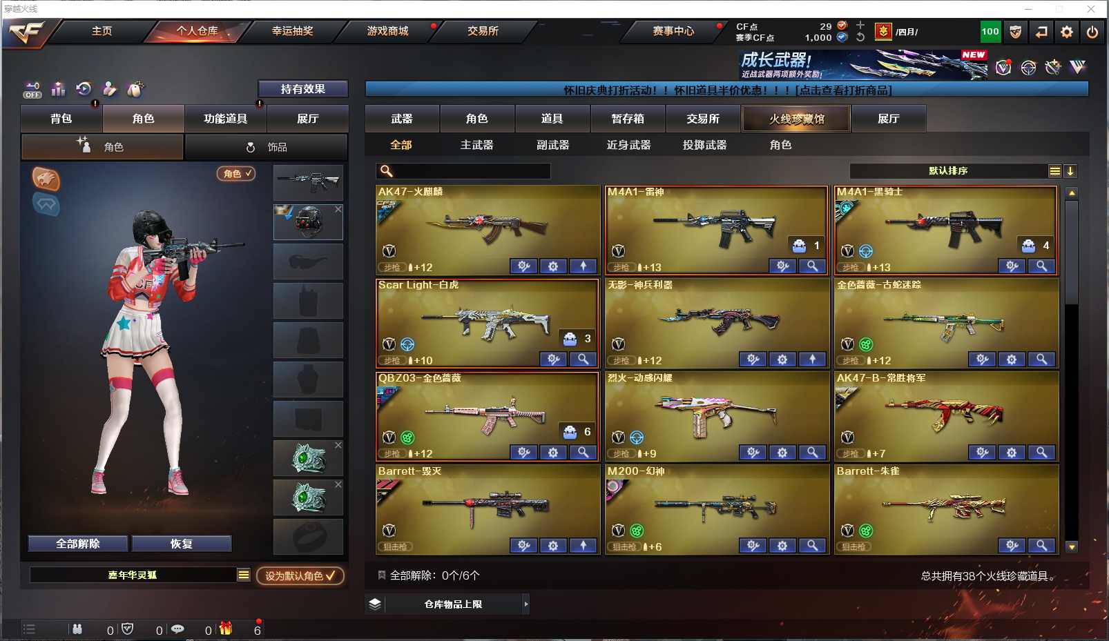 077-CF3708【北部 河北一区】【可二次】【可排位】38V 【M200-幻神幻神-宠儿-2021MVP幻神-纸灯龙幻神-荣耀世冠白鲨幻神-黄忠】【Scar Light-白虎】【QBZ03-金色蔷薇QBZ03-荣耀世冠白鲨】【火麒麟火麒麟-CF STAR火麒麟-心动糖果火麒麟-平天大圣】【雷神雷神-R.LGD-CFPLS18冠军雷神-星空】【黑骑士黑骑士-白马银枪M4A1-黑骑士音效卡】【毁灭毁灭-战神张飞】【COP357-幻灵】【沙鹰-修罗】【屠龙】无影-神兵利器 AK47-B-常胜将军 Barrett-朱雀 Barrett-暗月传说 王者之啸 王者之击 等 【小人枪】HK417-朱雀-蛇隐宗 M4A1-雷神-精英刀锋 【角色】乔伊教练 蛇隐宗 王者-瞳-闭月羞花等 截图展示段位不代表实际段位,如赛季更新等不可抗拒因素发生变化、时限道具不保证所剩时间,其余道具看截图或咨询客服) 【小述账号 安全无忧】