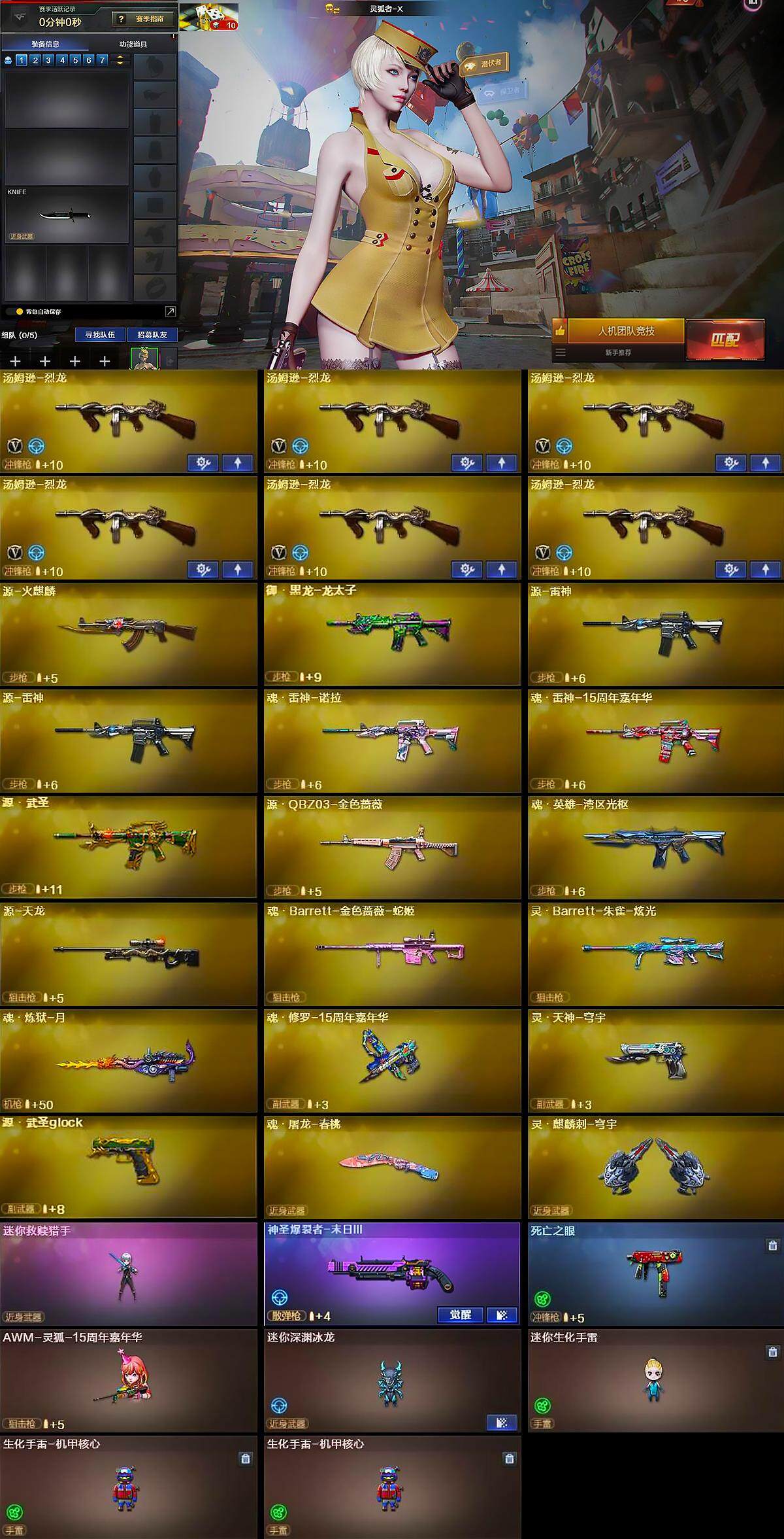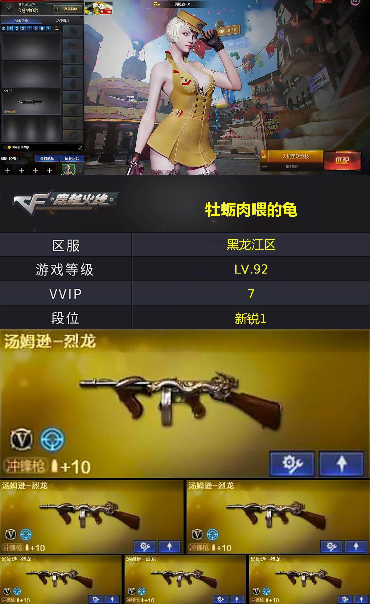 黑龙江区-7v-0王者-0炫金 【热门武器】:死亡之眼,汤姆逊-烈龙6 【角色】:灵狐者-x,青霞仙子,兔囡囡,铁扇公主-暗灵 【人偶武器】:迷你救赎猎手,awm-灵狐-15周年嘉年华,迷你深渊冰龙,迷你生化手蕾,生化手蕾-机甲核心2 【暴走生化】:死亡之眼 【挑战大师】:神圣爆裂者-末日iii 【英雄级武器】:汤姆逊-烈龙6 【道具】:超级背包,圣拳猎手-炽雪,虚空终结者-暗域熔岩,女
