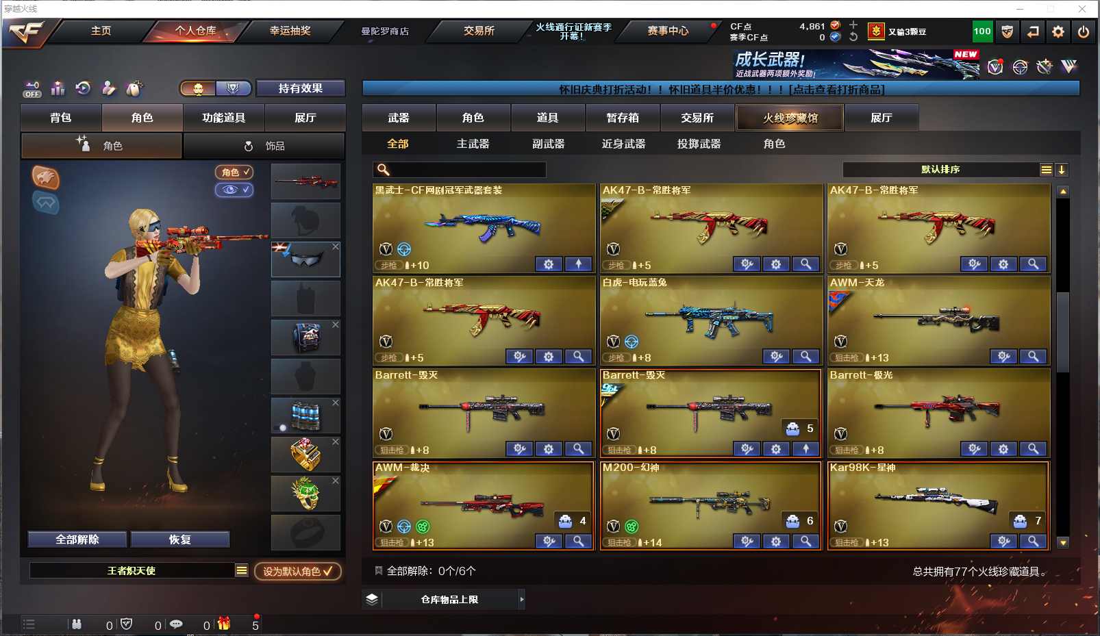 077-CF3710【东部 江苏一区】【可二次】【可排位】77V 4王者 4炫金【M200-幻神】【Kar98K-星神】【Scar Light-白虎白虎-AG-CFPLS20冠军】【QBZ03-金色蔷薇QBZ03-荣耀世冠白鲨QBZ03-金色蔷薇音效卡】【火麒麟火麒麟-心动糖果火麒麟-巅峰荣耀火麒麟-轻羽火麒麟-CF STAR火麒麟-AG战队火麒麟-CFS2018AK47-火麒麟音效卡】【黑龙黑龙-暗月黑龙-361M4A1-黑龙音效卡】【雷神雷神-CFS2019雷神-宇航兔雷神-荣耀之魄雷神-维纳斯M4A1-雷神音效卡】【黑骑士黑骑士-幻能朋克M4A1-黑骑士音效卡】【毁灭毁灭-冠军之怒毁灭-耀金Barrett-毁灭音效卡】【极光】【天龙天龙-能量核心】【裁决裁决-凤灵】【6盘龙】【2烈龙】【6加特林-炼狱】【4沙鹰-修罗】【柯尔特-冠军之特】【屠龙】王者之幻 王者之力 AK47-无影 AK12-天启 M4A1-武圣 无影-神兵利器 Barrett-暗月传说 天神-动感闪耀 斩神刀-雷暴 擎天 麒麟刺等 【小人枪】白虎-迷你小艾 天龙-曼陀罗 【角色】瞳 影豹 奇洋探员 乔伊教练 王者-瞳-闭月羞花 4防王者炽天使等 截图展示段位不代表实际段位,如赛季更新等不可抗拒因素发生变化、时限道具不保证所剩时间,其余道具看截图或咨询客服) 【小述账号 安全无忧】