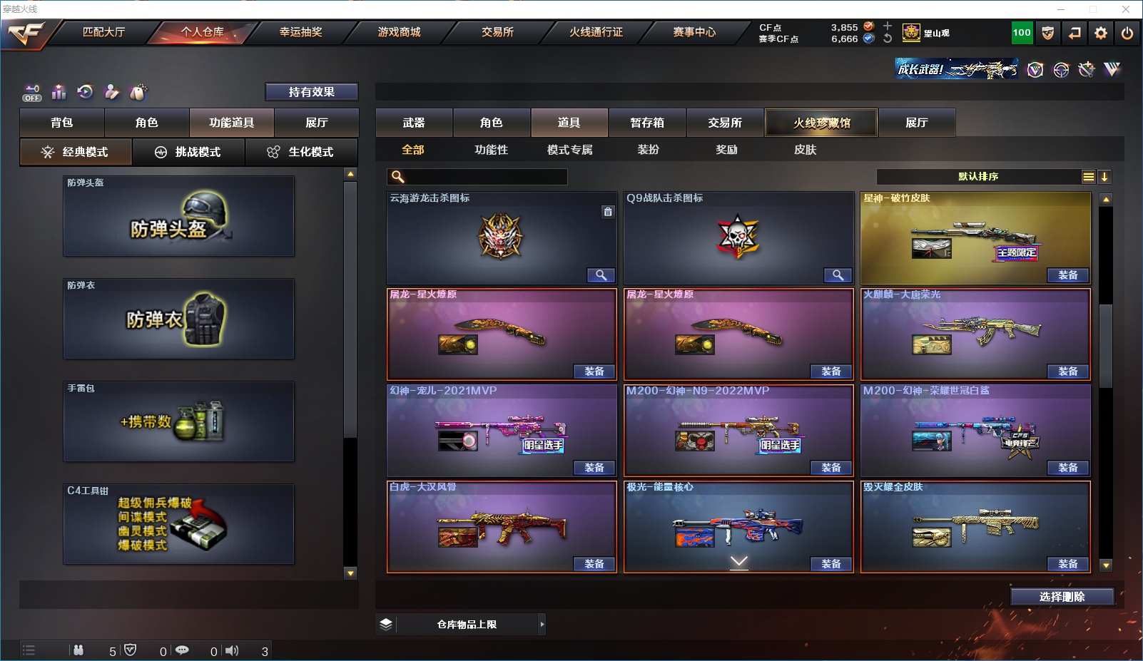 115V✨幻兽套影煞✨幻神4皮宠儿-世冠白鲨-N9-黄忠幻神音效卡✨蝶刃-毒蜂6烈7盘2炼狱生化道具齐全✨白虎大汉风骨-qbz蔷薇✨冠军之特usp神工✨4防王者玲珑小乔4防暗夜审判✨