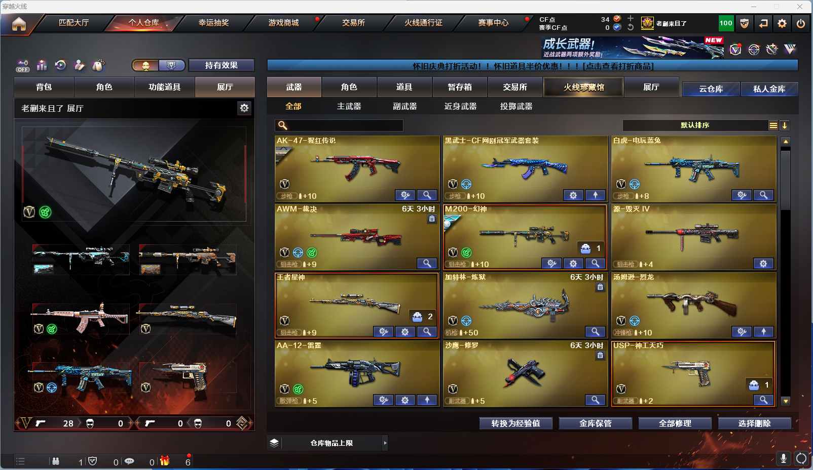 m9【找回包赔】【山东一区/27V/vip1】【M200-幻神/M200-幻神-黄忠皮肤/幻神-荣耀世冠白鲨2023 皮肤】【王者星神】【USP-神工天巧】【QBZ03-金色蔷薇/QBZ03-金色蔷薇音效卡】【M4A1-雷神/雷神-荣耀之魄/M4A1-战神赵云】【AK47-火麒麟2/火麒麟-百城/火麒麟-CFSTAR/火麒麟-心动糖果/火麒麟-平天大圣】【M4A1-黑骑士】【M4A1-黑龙/黑龙-墨子皮肤】【无影-神兵利器】【AK47-黑武士/黑武士-CF网剧冠军/黑武士-典韦皮肤】【天龙-CFSTAR】【M4A1-千变-孔明皮肤】【汤姆逊-烈龙】【修罗-CFSTAR】【天神-CF网剧冠军】【麒麟刺】【擎天-CF网剧冠军】【屠龙/屠龙-荣耀之锋】【王者涂鸦/王者涂鸦/木兰/乔伊教练/潘多拉-X/斯沃特-X/影武者-X/铁骑荣耀/幻影】【白虎-电玩蓝兔/AK-47-猩红传说】【AA-12-雷霆】【Colt 1911-大黄蜂/新USP-枪王排位奖励4】【金刚伞-电玩红兔】【神圣爆裂者-末日III/激光毁灭者III-白马银枪/激光毁灭者III/冰龙粉碎者-白马银枪】【COP-白鲨】【高爆手雷-神工天巧2/闪光弹-神工天巧2/烟雾弹-神工天巧2】【烟雾弹-荣耀世冠白鲨2023】【炫金毁灭】【烟雾保护头盔/闪光护目镜/防弹头盔3/防弹衣3/C4工具钳3/手雷包3/防化服3】