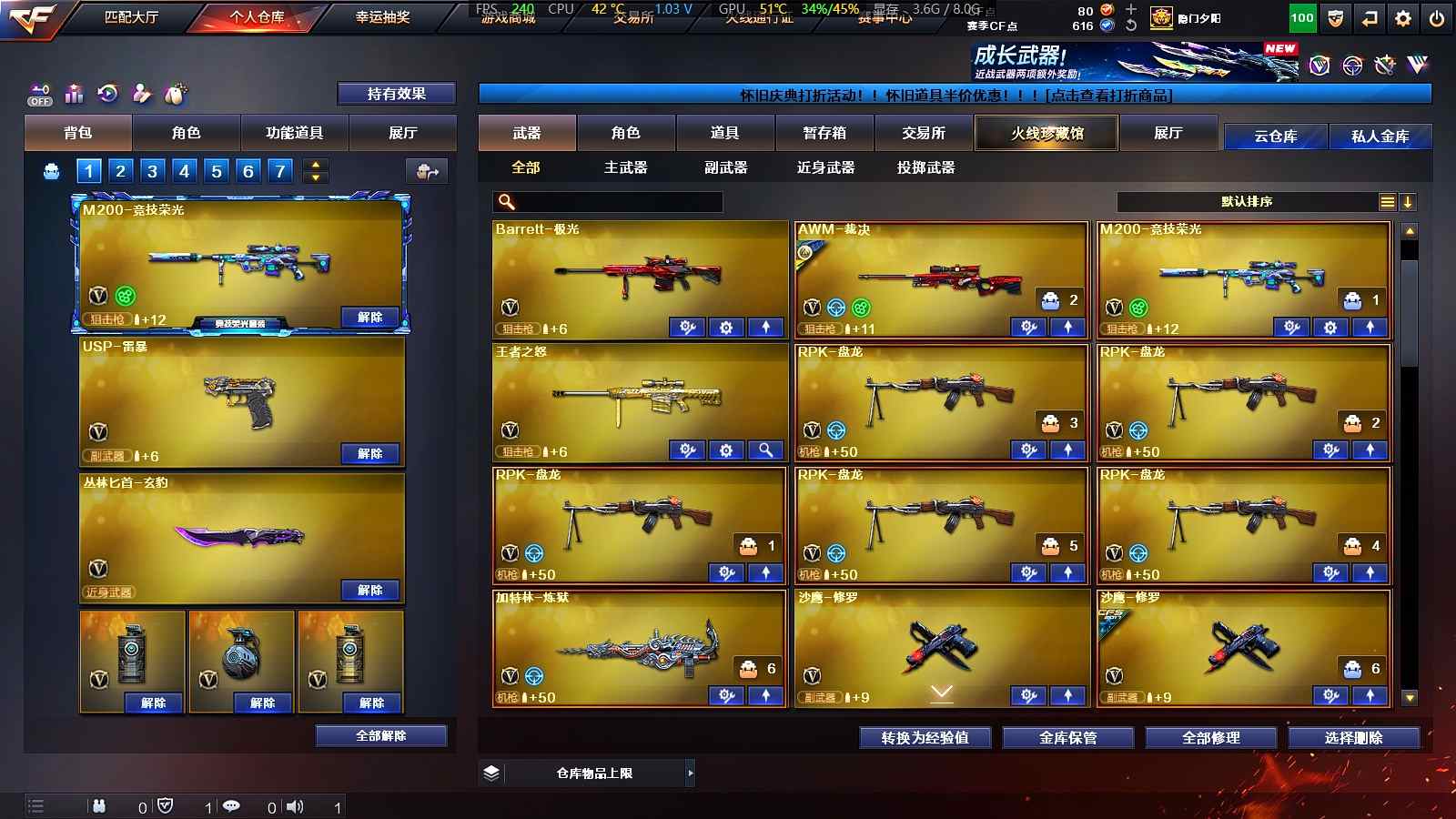 100V✨传说幽冥✨竞技套-M200竞技荣光✨3质量副手-usp雷暴柯尔特竞技cop堕天神✨qbz蔷薇裁决运输船✨蝴蝶5盘1炼狱生化道具齐全✨黑骑士冠军之势黑骑士音效卡✨4防云悠悠4防王者零-华冠丽服✨