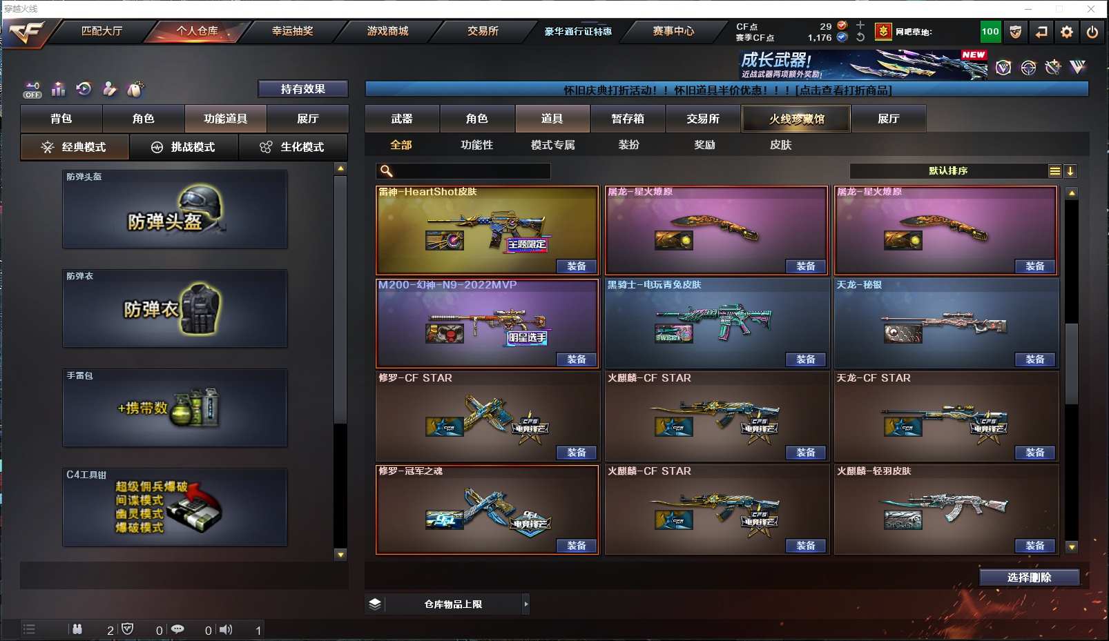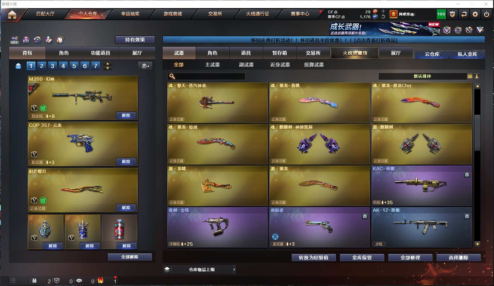 ✨HLL4把COP3把炽芒蝶刃传说破晓✨幻神音效卡N9皮✨王者星霆✨2把COP幻灵2把COP云龙✨金色蔷薇云龙白虎✨雷神音效卡女团皮✨四防王者瞳闭月羞花