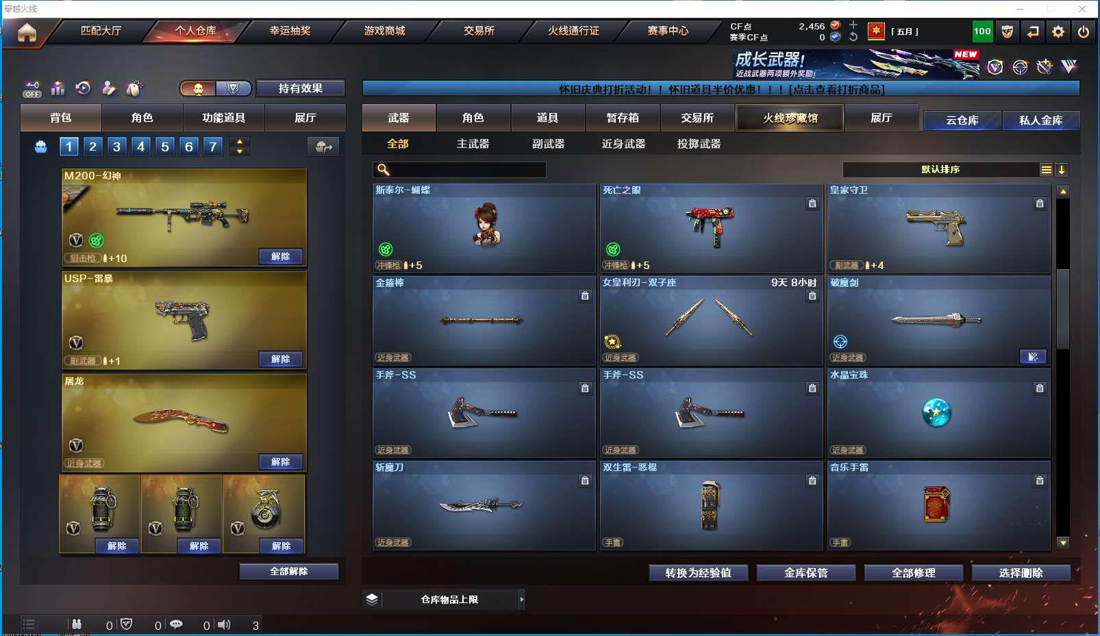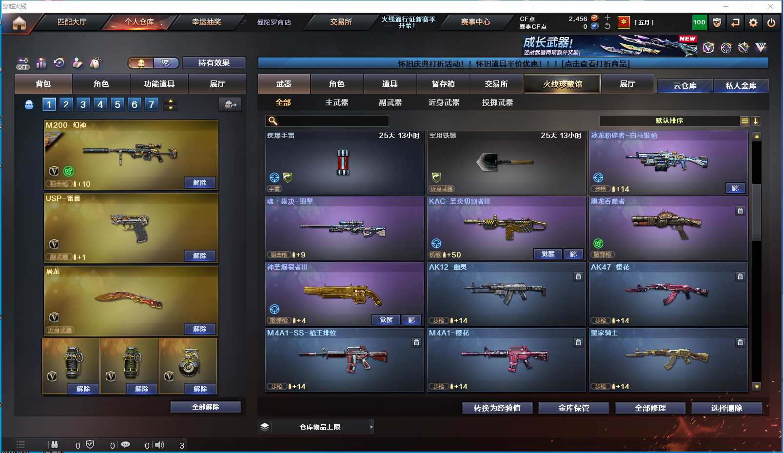 2405yc-西部-重庆一区-极品爆破生化双全装号【可排位】【可二次实名】【56V】【5烈龙/5盘龙】【M200-幻神/M200-幻神-黄忠皮肤】【USP-雷暴】【Scar Light-白虎】【QBZ03-金色蔷薇】【M4A1-雷神/雷神-星空】【Barrett-毁灭/Barrett-毁灭音效卡/毁灭-星空/毁灭-暗月】【AK47-火麒麟/火麒麟-轻羽皮肤/火麒麟-平天大圣】【M4A1-黑骑士/黑骑士-海王】【M4A1-黑龙】【AK47-无影/无影-能量核心】【M4A1-千变/M4A1-千变-孔明皮肤】【汤姆逊-烈龙5】【RPK-盘龙5】【加特林-炼狱】【斯泰尔-蝴蝶/死亡之眼/迷你生化手雷】【沙鹰-天神】【擎天】【屠龙2】【龙啸4】【迷迭香/紫霞/灵狐者-黄金海岸/蜀雪/影武者-X/幻影/堕天使/复仇者】【M4A1-玫瑰精灵/M4A1-龙血】【AA-12-雷霆2/AK47-黑鲨2/AK47-机械迷城】【Colt 1911-大黄蜂2】【斩魔刀/迷你深渊冰龙】【神圣爆裂者III/KAC-圣炎切割者III/冰龙粉碎者-白马银枪】【黑龙吞噬者/斯泰尔-巧克力3】【M4A1-雷神-精英刀锋/COP-旗袍/巴雷特-零-水下丽影】【高爆手雷-雷暴3/闪光弹-雷暴3/烟雾弹-雷暴3】【炫金黑龙】【超级护目镜/烟雾保护头盔/闪光护目镜/超级对讲机/炫彩背包/防弹头盔2/防弹衣2/C4工具钳2/手雷包2/防化服2】多亮点详情请看图