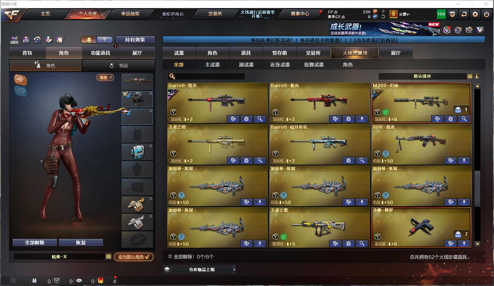 077-CF3703【西部 重庆一区】【可二次】【可排位】62V 10王者 9炫金【M200-幻神幻神-曹操幻神-黄忠】【王者白虎】【QBZ03-金色蔷薇】【火麒麟火麒麟-心动糖果火麒麟-AG战队火麒麟-CF STAR】【黑龙黑龙-墨子】【雷神雷神-战神赵云雷神-荣耀之魄】【黑骑士】【毁灭毁灭-墨兰毁灭-CFS2018Barrett-毁灭音效卡】【极光】【天龙天龙-传奇70KG】【盘龙】【加特林-炼狱】【沙鹰-修罗】【屠龙】王者之霆 王者之魄 王者之光 王者之怒 M4A1-玫瑰精灵 沙鹰-天神 龙啸等 【角色】葵-阿尔法武装 乔伊教练 蛇隐宗等 截图展示段位不代表实际段位,如赛季更新等不可抗拒因素发生变化、时限道具不保证所剩时间,其余道具看截图或咨询客服) 【小述账号 安全无忧】