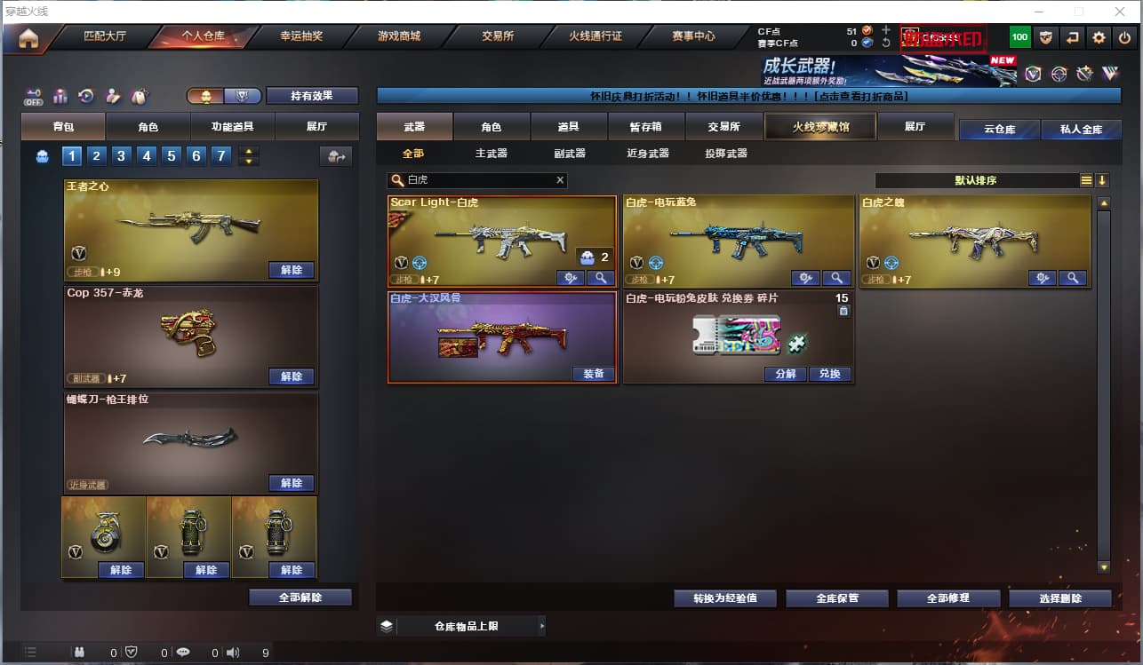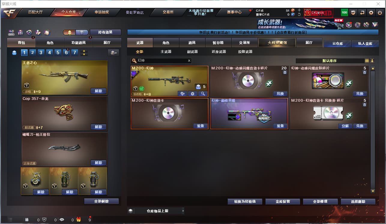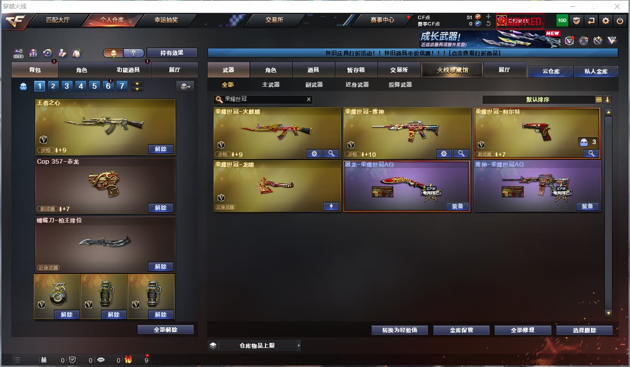2243822-f南部/广东三区/129v/幻神 巅峰荣耀 幻神音效卡/雷暴套/柯尔特竞技荣光 荣耀世冠套 炽芒蝶刃/scar白虎 大汉风骨/电玩白虎 白虎之魄/朱雀/m4神工天巧/3盘龙 3炼狱 迷你小刚/6烈龙 斯泰尔蝴蝶/火麒麟三件套/毁灭三件套/雷神 冠军之魄/春/魅影/3音效卡/31皮可排