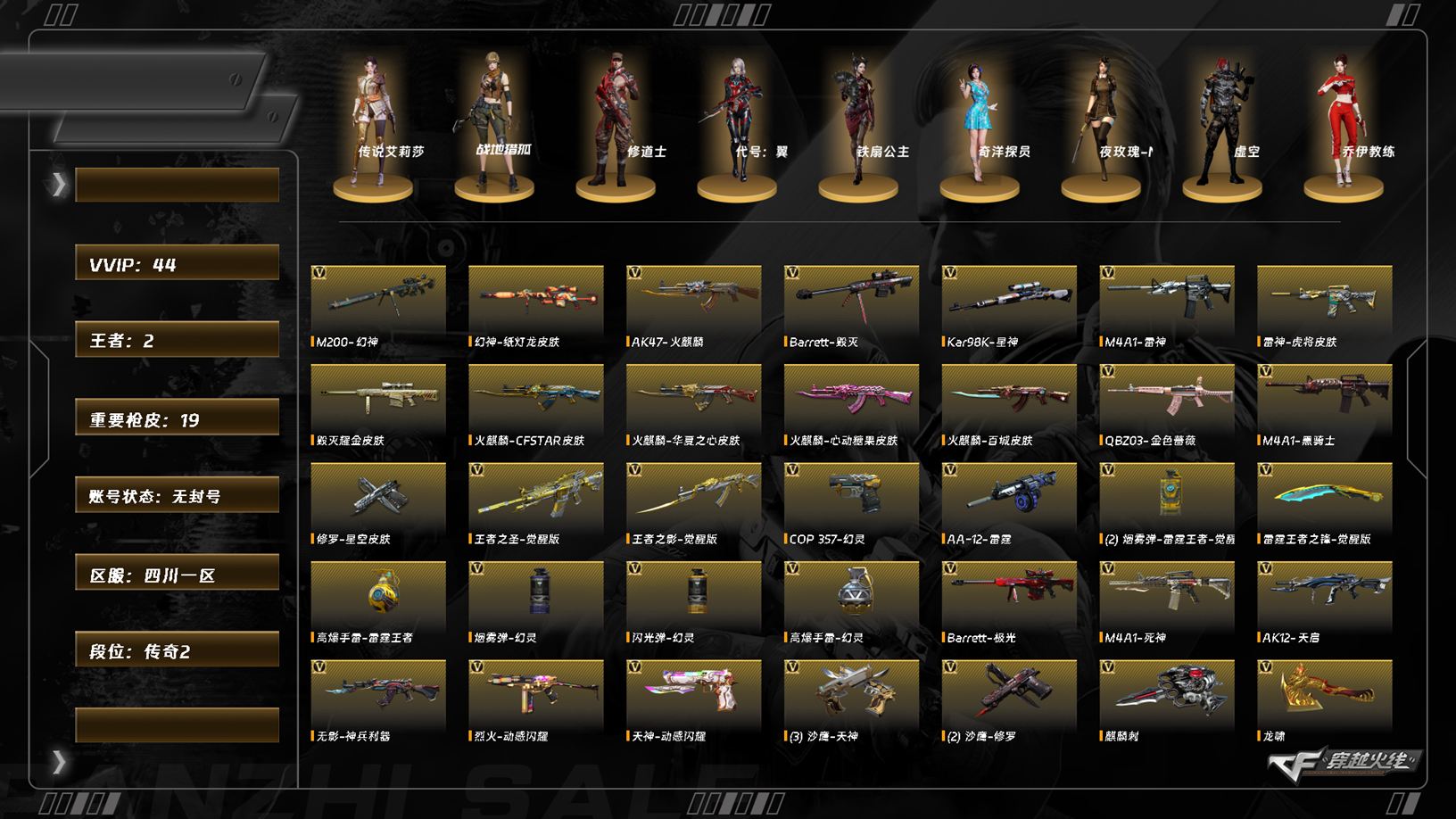 7194,西部,四川一区,可排位,42v,【,三防传说角色,传说艾莉莎,】,幻神,幻神纸灯龙,星神,q金色蔷薇,cop幻灵,【角色】,零纪元,战地猎狐,奇洋探员,乔伊教练,修道士,云海玲珑,【音效卡】,碧霄极光音效卡,极光音效卡,【呛皮】,雷神神秘按键,【小人呛】,白虎迷你小艾,火麒麟零纪元