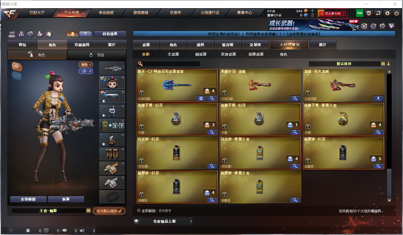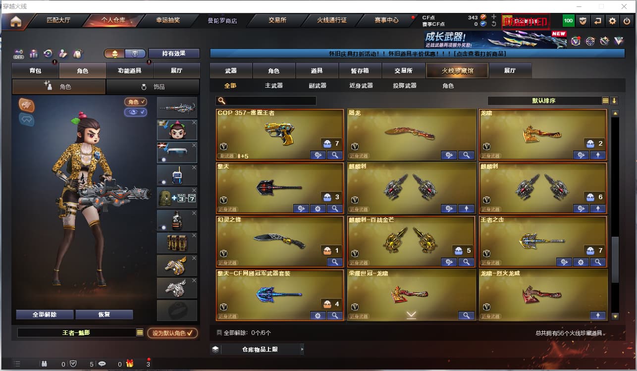 2254776-cf北部/河南一区/56v/王者幻神/q金色蔷薇/6烈龙6盘龙 斯泰尔蝴蝶/王者之力/毁灭/天龙/王者之魄/王者之武/猎神/雷神2/火麒麟/cop雷霆王者2/黑骑士三件套/王者葵貂蝉(四防)/王者魅影(四防)/17皮可排
