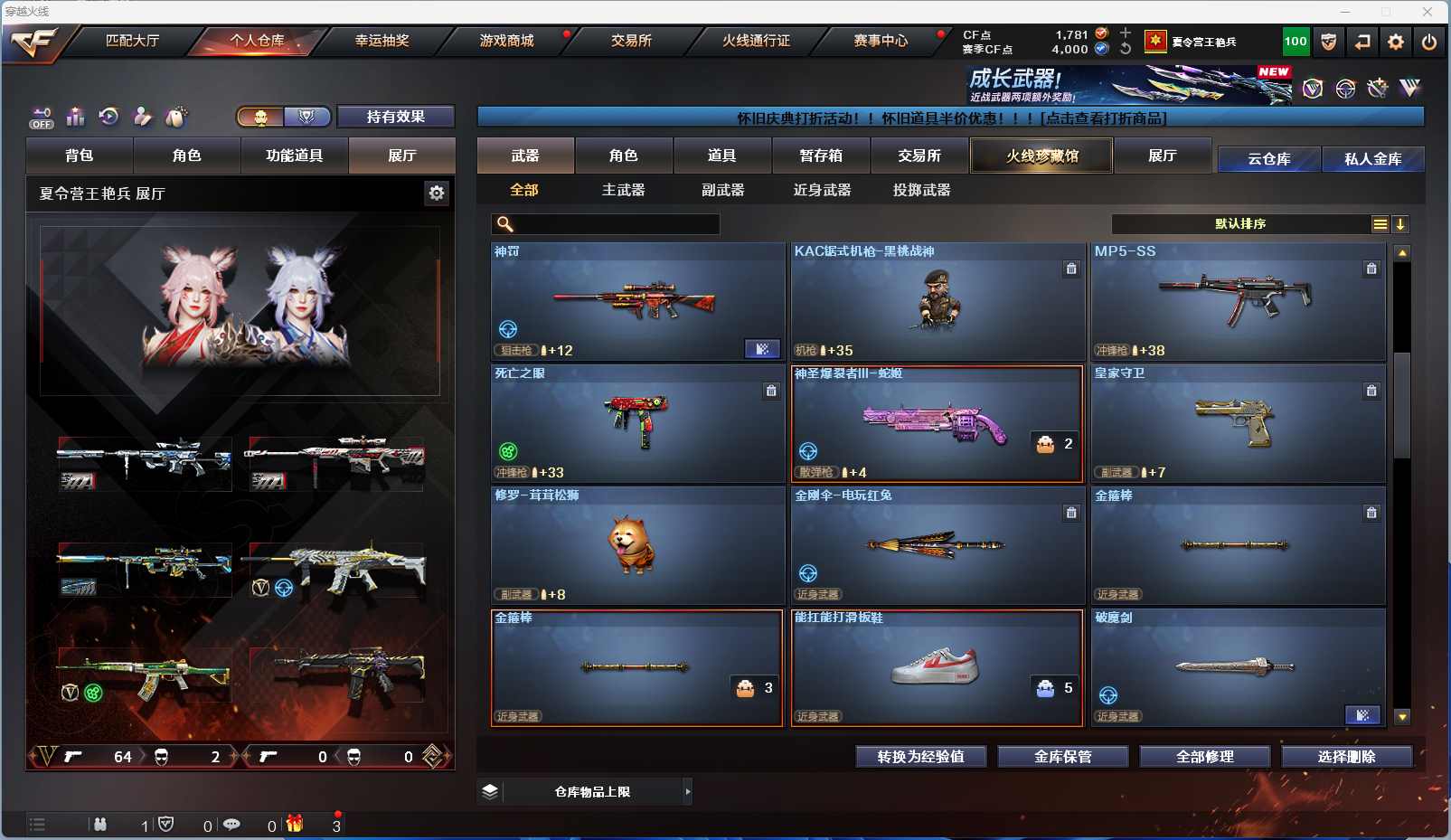 a7【找回包赔】【广东一区/59V/vip1】【6盘龙】【5烈龙】【M200-幻神/幻神-星耀 皮肤/幻神-电流骇客 皮肤】【Kar98K-星神】【柯尔特-竞技荣光】【Scar Light-白虎】【M4A1-雷神2/雷神-暗月】【Barrett-毁灭】【AK47-火麒麟/火麒麟-CFSTAR2】【M4A1-黑骑士音效卡】【M4A1-黑龙】【AK47-无影/无影-神兵利器】【黑武士-锦绣游龙】【M4A1-死神】【汤姆逊-烈龙5/烈龙-云海游龙】【RPK-盘龙6】【加特林-炼狱/炼狱-星空2】【死亡之眼】【沙鹰-修罗】【沙鹰-天神/天神-动感闪耀】【擎天-云海游龙】【屠龙-云海游龙/屠龙-动感闪耀】【龙啸-烈火龙威】【关小雨/王者零-华冠丽服/灵动武士/木兰/奇洋探员/云海玲珑/乔伊教练/修道士/青霞仙子/妲己/蜀雪/娟娟/潘多拉-X/斯沃特-X/救世主-X/堕天使/复仇者】【M4A1-青龙/M4A1-玫瑰精灵】【白虎-电玩蓝兔/Scar Light-像素/AK47-B-常胜将军2/AK47-B-身先士卒/AK47-B-战士/AK47-B-战神/AK-47-猩红传说2】【AA-12-雷霆/AK47-黑鲨/AK12-天启】【AN94-超新星】【Barrett-暗月传说3】【COP 357-青龙/新USP-枪王排位奖励3】【斩魔刀/金刚伞-电玩红兔/迷你深渊冰龙】【神圣爆裂者-末日III/激光毁灭者III-白马银枪3/激光毁灭者III/冰龙粉碎者-白马银枪/阐释者III】【异变清道夫/异变清道夫】【M4A1-雷神-精英刀锋/迷你裂空之翼】【王者之决/王者之击/王者之啸】【高爆手雷-竞技荣光/烟雾弹-竞技荣光】【手雷-云海游龙】【手雷-热带奇洋】【炫金雷神】【语音特效-云海游龙】【超级背包/防弹头盔6/防弹衣6/C4工具钳6/手雷包6/防化服3】
