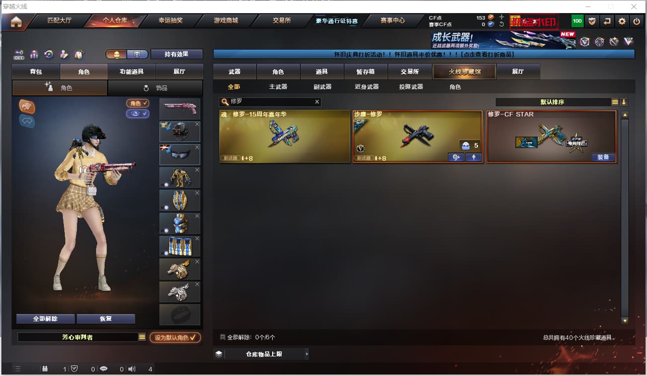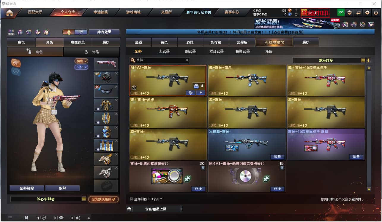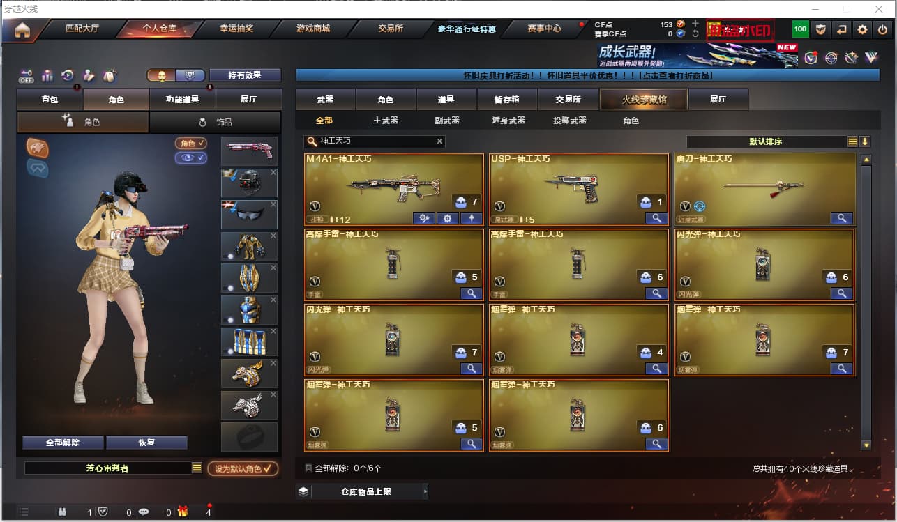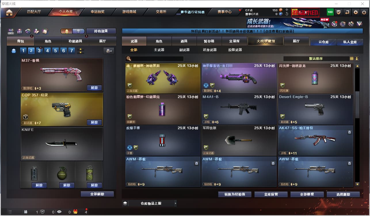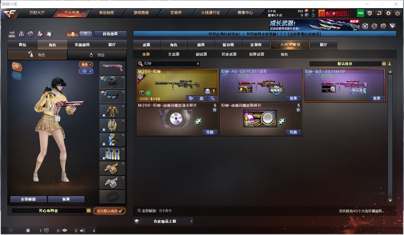 2269906-双色幻神 q天罚 神工天巧套)cf北部/北京1区/40v/m200幻神 宠儿皮 ags17冠军皮/神工天巧套/cop幻灵/q天罚/火麒麟/雷神/黑骑士/毁灭/修罗/麒麟刺/屠龙/幻灵之峰/龙啸/兰(四防)/王者炽天使(四防)9皮可排