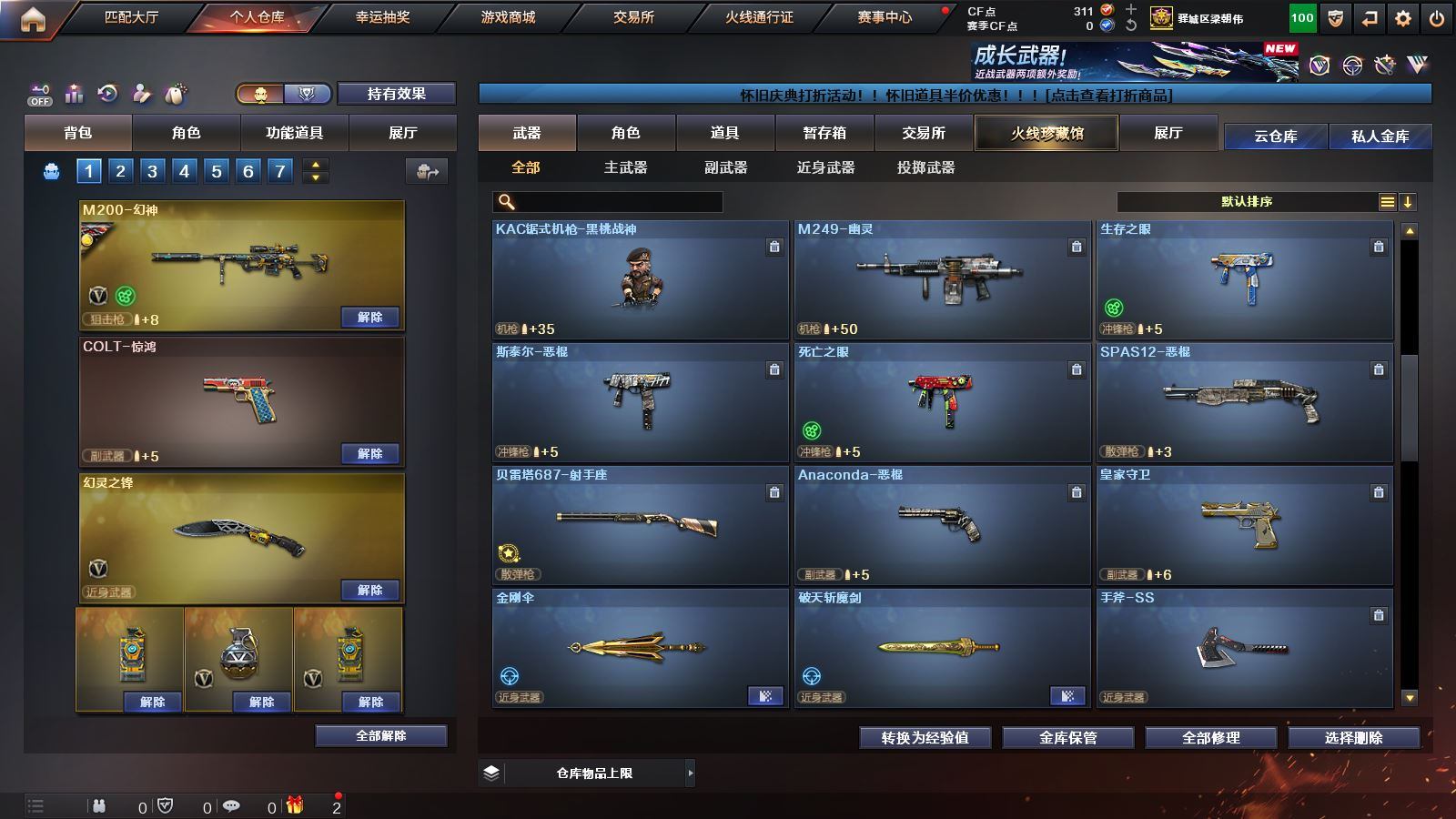 河北一区 vip6 98V 【M200幻神CFPLS17冠军皮肤】【6烈龙6盘龙炼狱】【6黑骑士】【白虎】【qbz03金色蔷薇CFPLS19冠军皮肤】【夜魔套装】【CF网剧冠军武器套装】【王者火魄 王者之武】【千变 火麒麟 黑龙 黑武士 天启 武圣 黑鲨 青龙 朱雀 无影神兵利器 源雷神IV 穹宇 玫瑰精灵 战士 黑骑士海王 身先士卒 常胜将军 极光】——【沙鹰修罗 沙鹰天神 武圣 cop堕天神 破空枪刃夜魔 天神cf网剧冠军武器套装】——【屠龙 龙啸 擎天 麒麟刺 马来剑夜魔 幻灵之锋 擎天CF网剧冠军武器套装】——【夜魔投掷武器套装7 幻灵投掷武器套装2】——【热门武器/小人枪】【青龙掌上穿越火线 火麒麟绝迹 炫金雷神 炫金毁灭 死亡之眼】——【角色】【4防凌霄】【零 战地猎狐】