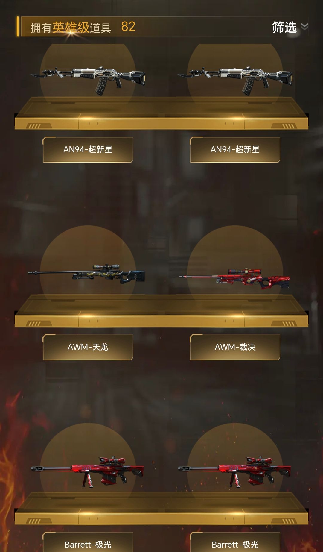 【等级】102【区服】南方大区【段位】新锐1【英雄角色】5【英雄武器】77【王者级武器】超新星-悦享 王者之怒-觉醒版 王者之心-觉醒版【炫金级武器】炫金天龙 炫金毁灭 炫金毁灭【英雄级角色】审判者 零 樱 魅影 炫【英雄级武器】barrett-毁灭 barrett-毁灭 an94-超新星 m4a1-武圣 an94-超新星 m4a1-死神 ak47-黑武士 麒麟刺 ak47-黑