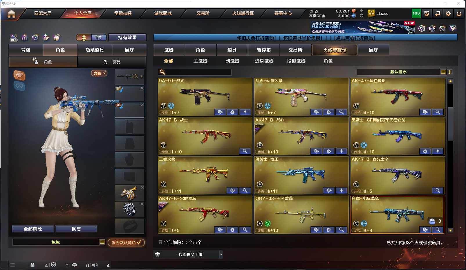 017-w4944-四川一区-(可二次-VIP6)-68V-【幻神-荣耀世冠EP-AGCFPLS17冠军-动感闪耀】-【星神-破竹-漫游】-【裁决-叶芒苍灵-裁决音效卡】-【传说夜影】-【柯尔特冠军之特-USP神工天巧-柯尔特荣耀世冠EP】-【妮妮四防-兰巾帼英雄四防-王者葵貂蝉四防-暗夜X-潘多拉X】-白虎电玩-QBZ金色蔷薇(电竞之星-荣耀世冠EP)-QBZ王者蔷薇-HK417朱雀电竞之星-雷神(荣耀之魄-动感闪耀)-火麒麟(荣耀世冠AG-大唐荣光)-QBZ天罚-烈火-王者火魄-毁灭(虹光风暴-英雄计划-墨兰)-沙鹰修罗-沙鹰天神-幻灵之锋-唐刀神工天巧-王者之锋-幻灵手雷套-堕天神手雷套-神工天巧手雷套