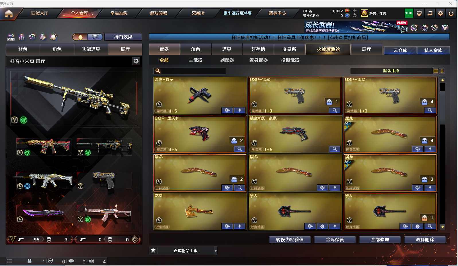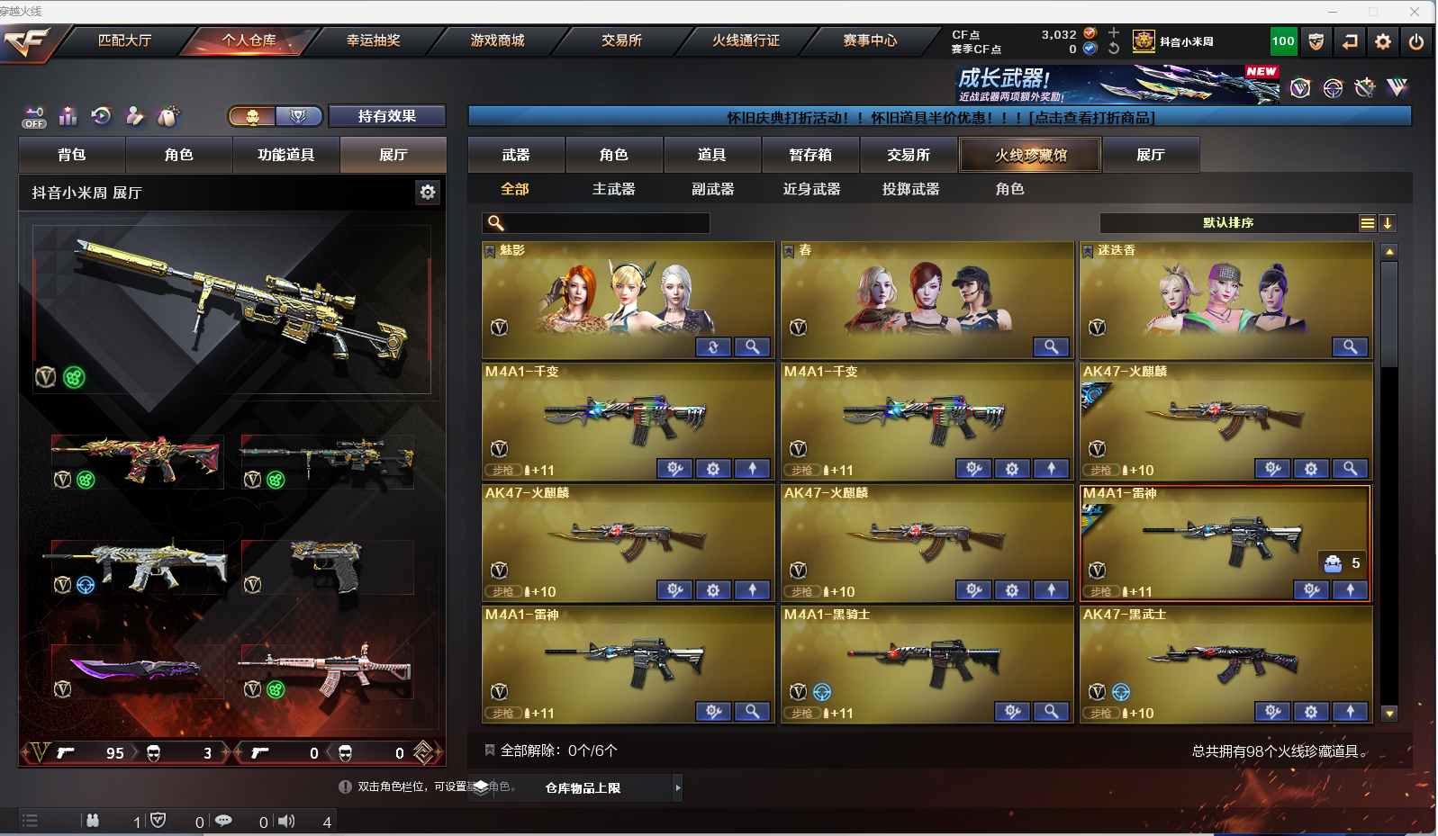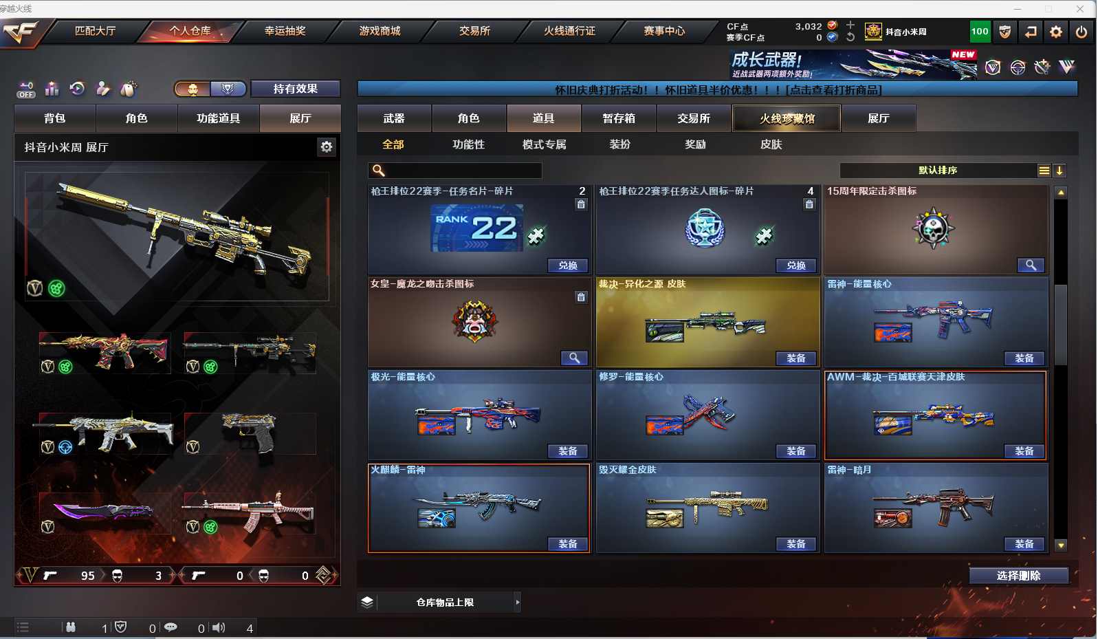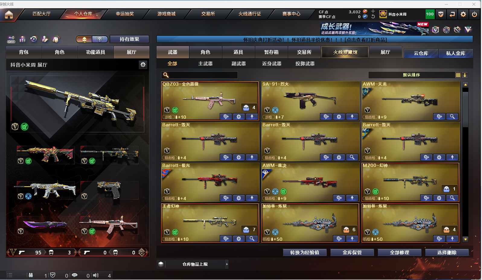 m68【找回包赔】【重庆一区/96V/vip1】【雷暴套/夜魔套/6炼狱】【M200-幻神】【王者幻神】【USP-雷暴2】【Scar Light-白虎】【QBZ03-金色蔷薇】【M4A1-雷神2/M4A1-雷神音效卡/雷神-荣耀之魄/雷神-耀金皮肤/雷神-暗月/雷神-能量核心】【破空枪刃-夜魔/COP-堕天神】【Barrett-毁灭3/Barrett-毁灭音效卡/毁灭-荣耀之怒/毁灭耀金皮肤】【AK47-火麒麟3/AK47-火麒麟音效卡/火麒麟-CFSTAR2/火麒麟-轻羽皮肤/火麒麟-雷神】【M4A1-黑骑士/M4A1-黑骑士音效卡】【HK417-朱雀】【AK47-黑武士2】【AWM-天龙/天龙-CFSTAR/AWM-天龙-传奇白鲨】【Barrett-极光/极光-能量核心2】【AWM-裁决】【M4A1-千变2】【汤姆逊-烈龙3】【加特林-炼狱7】【斯泰尔-蝴蝶/死亡之眼】【沙鹰-修罗4/修罗-CFSTAR2/修罗-能量核心】【麒麟刺】【擎天2】【屠龙4/屠龙-荣耀之锋2/屠龙-秘银2】【龙啸】【春/王者玲珑/王者-瞳-闭月羞花/魅影/迷迭香/兰-海滩派对/木兰/兰-新年限定/雪莉杨/潘多拉-X/救世主-X/影武者-X/铁骑荣耀/新娜塔莎/幻影/堕天使/复仇者】【M4A1-青龙/M4A1-玫瑰精灵/M4A1-龙血2/M4A1-夜魔/M4A1-武圣】【AK47-雷暴/AA-12-雷霆/AK47-黑鲨2/AK12-天启】【Colt1911-小故障/新USP-枪王排位奖励5】【斩神刀/迷你深渊冰龙/马来剑-夜魔】【神圣爆裂者III/神圣爆裂者-末日III/激光毁灭者III-白马银枪】【斯泰尔-巧克力/轻型军用手斧-镜】【M37-葵】【王者之戮/王者之锋】【高爆手雷-雷暴7/闪光弹-雷暴7/烟雾弹-雷暴7】【高爆手雷-夜魔2/闪光弹-夜魔2/烟雾弹-夜魔2】【炫金黑龙/炫金骑士】【透明头盔/超级背包/炫彩背包/防弹头盔6/防弹衣7/C4工具钳3/手雷包3/防化服3】