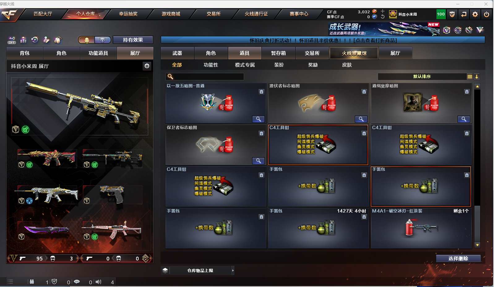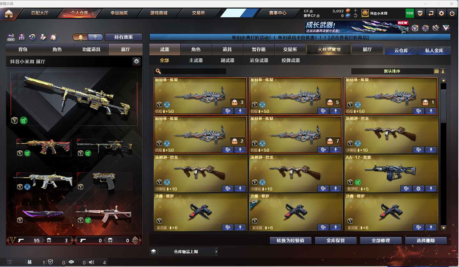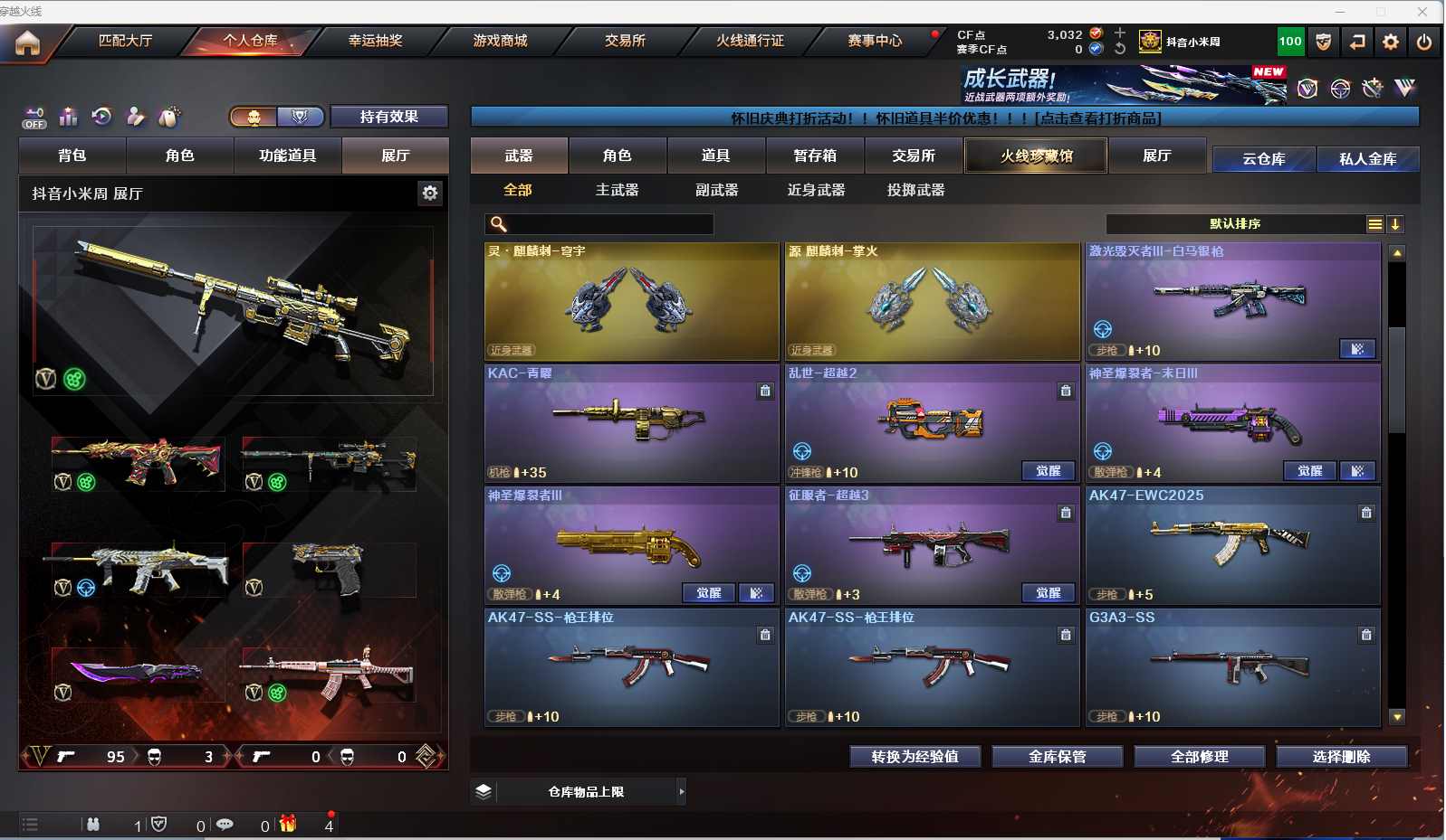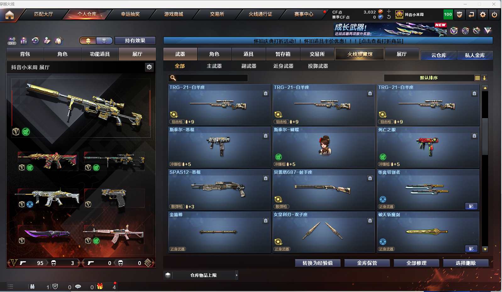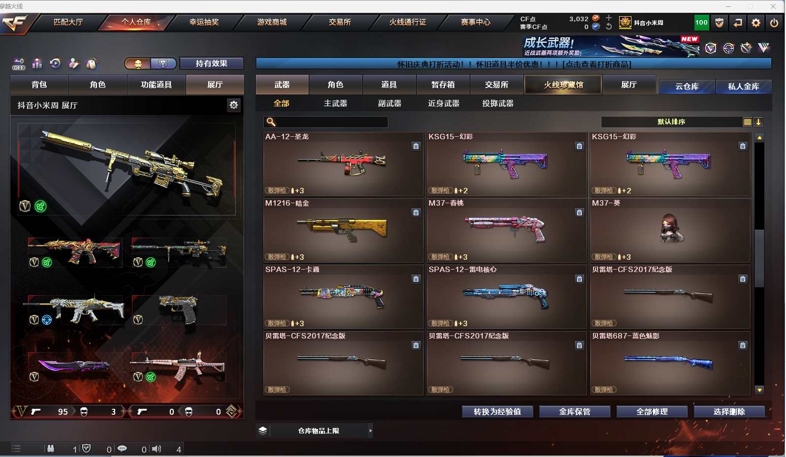 m68【找回包赔】【重庆一区/96V/vip1】【雷暴套/夜魔套/6炼狱】【M200-幻神】【王者幻神】【USP-雷暴2】【Scar Light-白虎】【QBZ03-金色蔷薇】【M4A1-雷神2/M4A1-雷神音效卡/雷神-荣耀之魄/雷神-耀金皮肤/雷神-暗月/雷神-能量核心】【破空枪刃-夜魔/COP-堕天神】【Barrett-毁灭3/Barrett-毁灭音效卡/毁灭-荣耀之怒/毁灭耀金皮肤】【AK47-火麒麟3/AK47-火麒麟音效卡/火麒麟-CFSTAR2/火麒麟-轻羽皮肤/火麒麟-雷神】【M4A1-黑骑士/M4A1-黑骑士音效卡】【HK417-朱雀】【AK47-黑武士2】【AWM-天龙/天龙-CFSTAR/AWM-天龙-传奇白鲨】【Barrett-极光/极光-能量核心2】【AWM-裁决】【M4A1-千变2】【汤姆逊-烈龙3】【加特林-炼狱7】【斯泰尔-蝴蝶/死亡之眼】【沙鹰-修罗4/修罗-CFSTAR2/修罗-能量核心】【麒麟刺】【擎天2】【屠龙4/屠龙-荣耀之锋2/屠龙-秘银2】【龙啸】【春/王者玲珑/王者-瞳-闭月羞花/魅影/迷迭香/兰-海滩派对/木兰/兰-新年限定/雪莉杨/潘多拉-X/救世主-X/影武者-X/铁骑荣耀/新娜塔莎/幻影/堕天使/复仇者】【M4A1-青龙/M4A1-玫瑰精灵/M4A1-龙血2/M4A1-夜魔/M4A1-武圣】【AK47-雷暴/AA-12-雷霆/AK47-黑鲨2/AK12-天启】【Colt1911-小故障/新USP-枪王排位奖励5】【斩神刀/迷你深渊冰龙/马来剑-夜魔】【神圣爆裂者III/神圣爆裂者-末日III/激光毁灭者III-白马银枪】【斯泰尔-巧克力/轻型军用手斧-镜】【M37-葵】【王者之戮/王者之锋】【高爆手雷-雷暴7/闪光弹-雷暴7/烟雾弹-雷暴7】【高爆手雷-夜魔2/闪光弹-夜魔2/烟雾弹-夜魔2】【炫金黑龙/炫金骑士】【透明头盔/超级背包/炫彩背包/防弹头盔6/防弹衣7/C4工具钳3/手雷包3/防化服3】