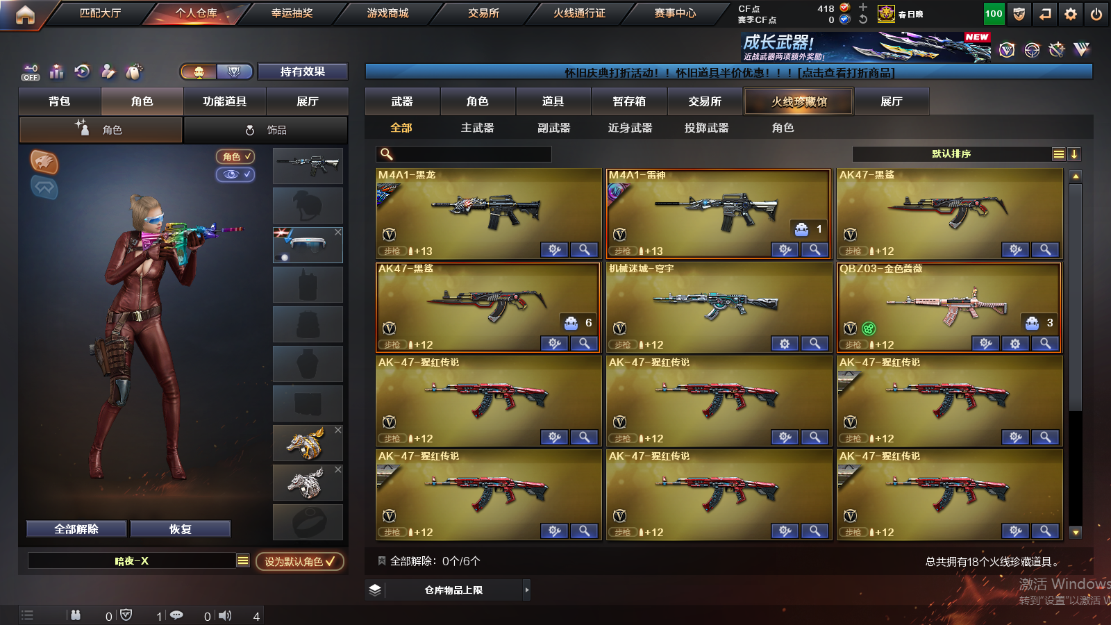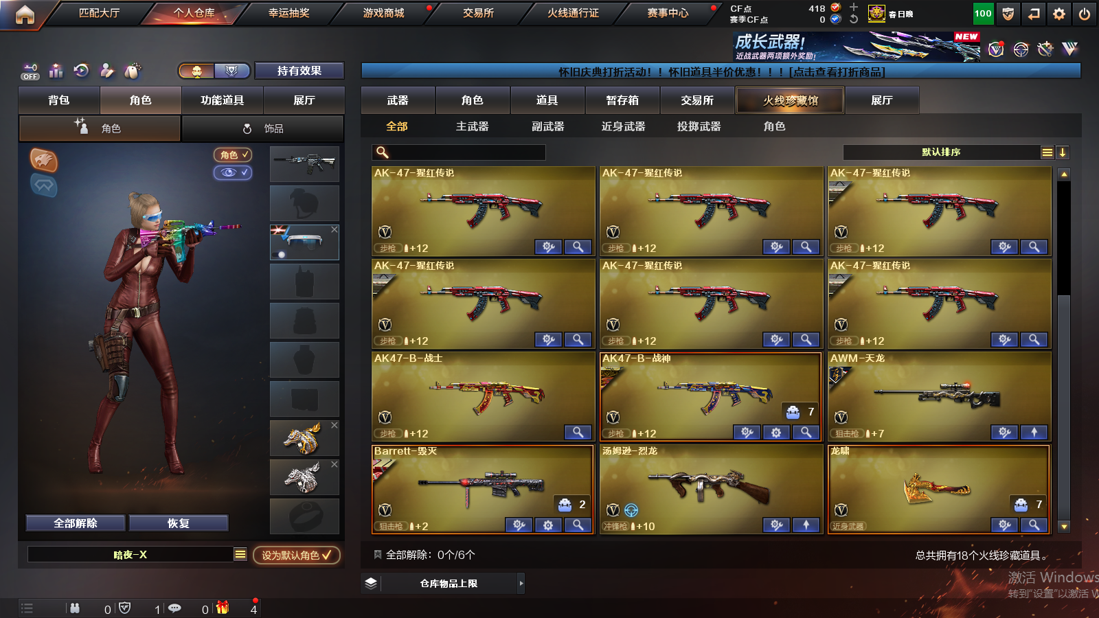 【南部战区 湖南一区 18v 2炫金 q金色蔷薇】 q03-金色蔷薇 ak-47-猩红传说 ak47-b-战士 ak47-b-战神 awm-天龙 barrett-毁灭 汤姆逊-烈龙 龙啸 m4a1-黑龙 m4a1-雷神 ak47-黑鲨 机械迷城-穹宇